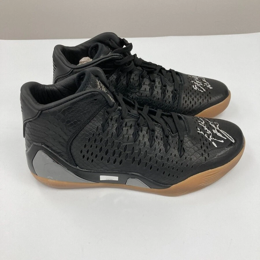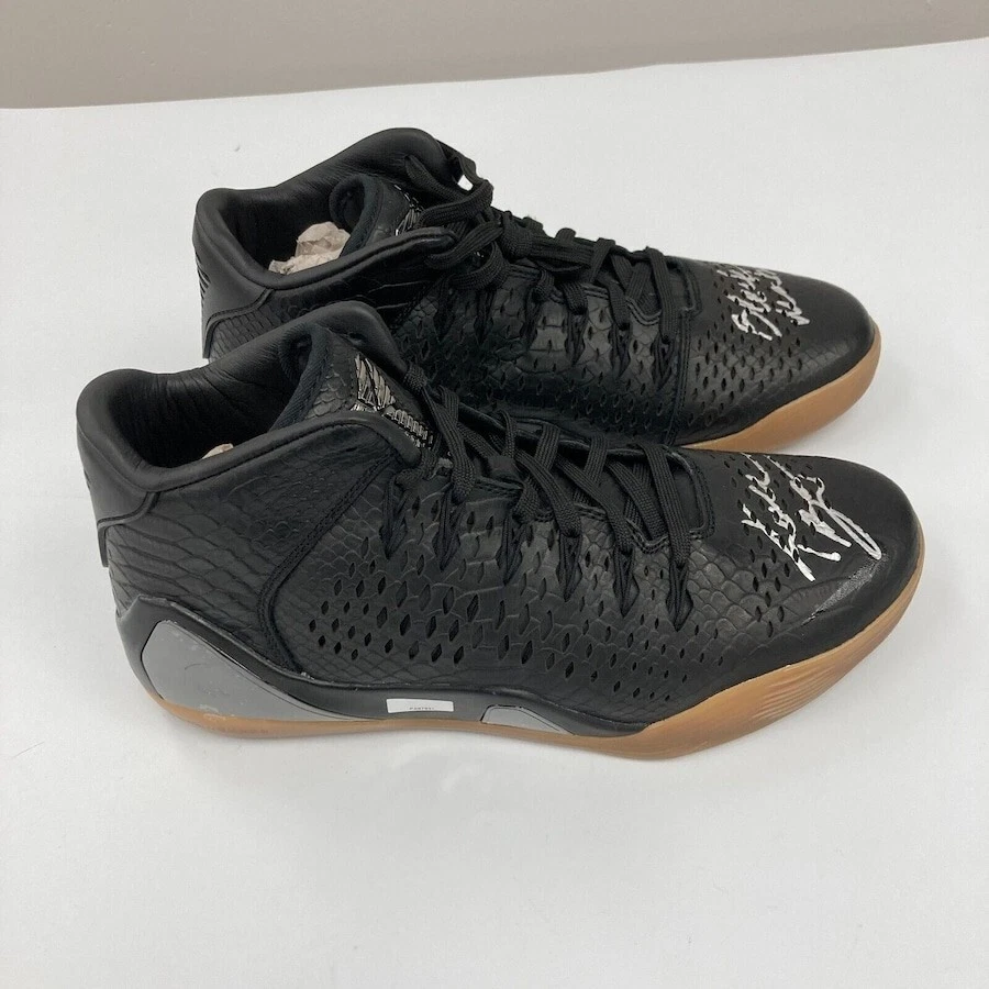 Elevate your game with these Kobe Bryant "Black Mamba" signed and inscribed Nike Kobe IX Mid EXT sneakers. These shoes are perfect for basketball enthusiasts and collectors alike, with professional sports authentication from Panini. The shoes feature an original design and are a unique item that will make a great addition to any sports memorabilia collection. With a focus on quality and performance, these shoes are perfect for those who want to improve their game or simply appreciate the talent of one of the most iconic basketball players of all time. Don't miss out on this opportunity to own a piece of sports history.