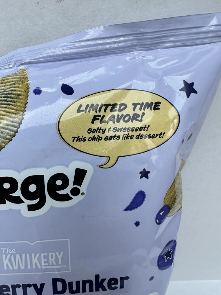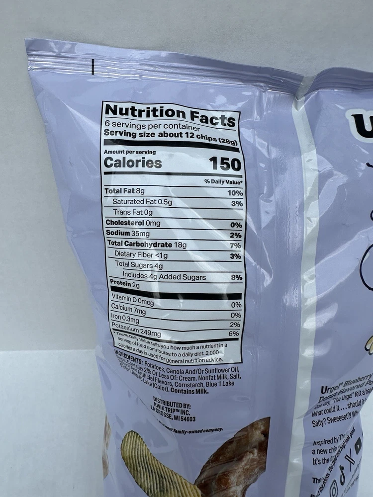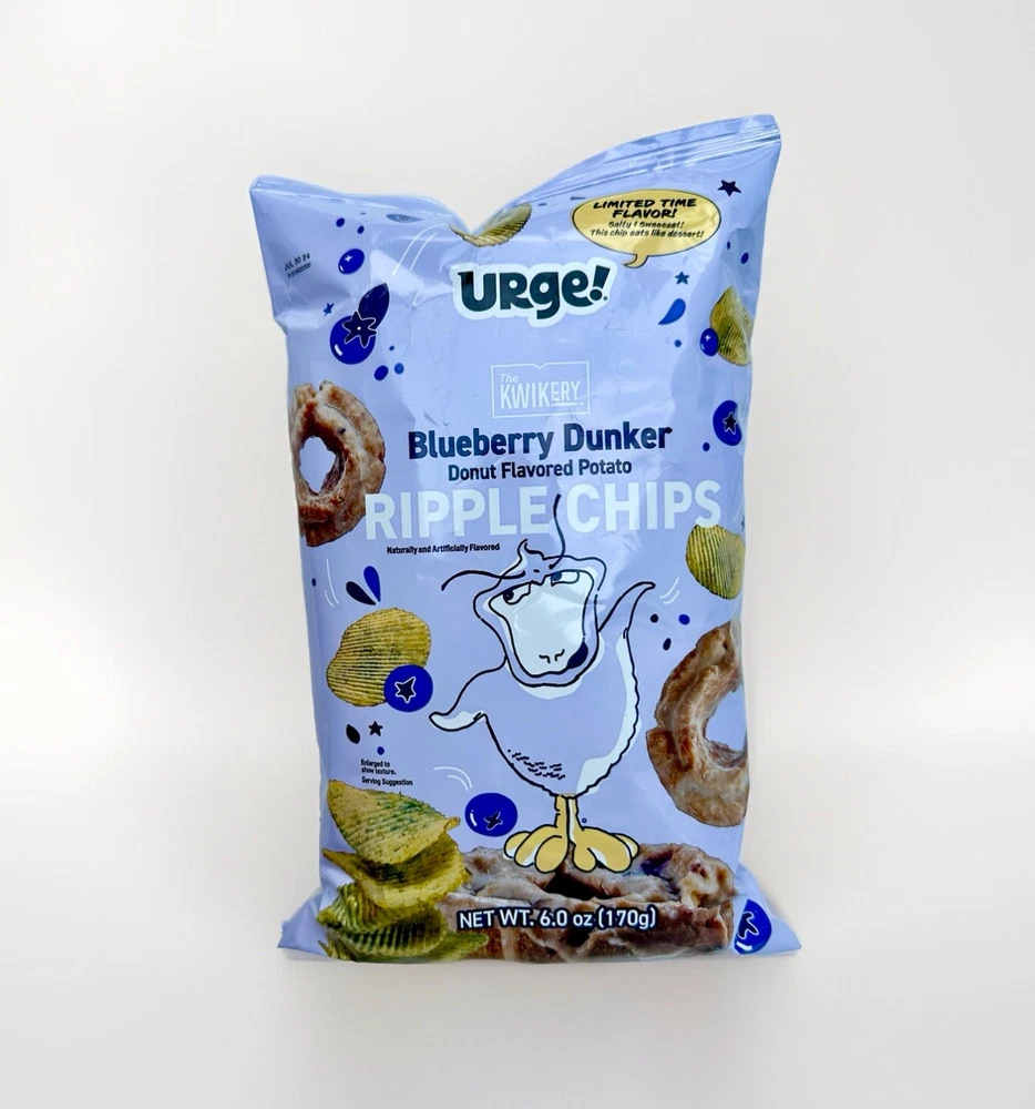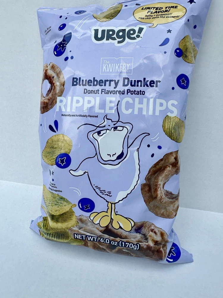 Kwik Trip - URGE! Blueberry Dunker Donut Potato Ripple Chips Includes: 1 Bag (6 oz) 6 servings per bag. Had a limited summer run, no longer available / discontinued ** EXPIRATION JULY 30, 2024 One Day Ship Smoke Free Home