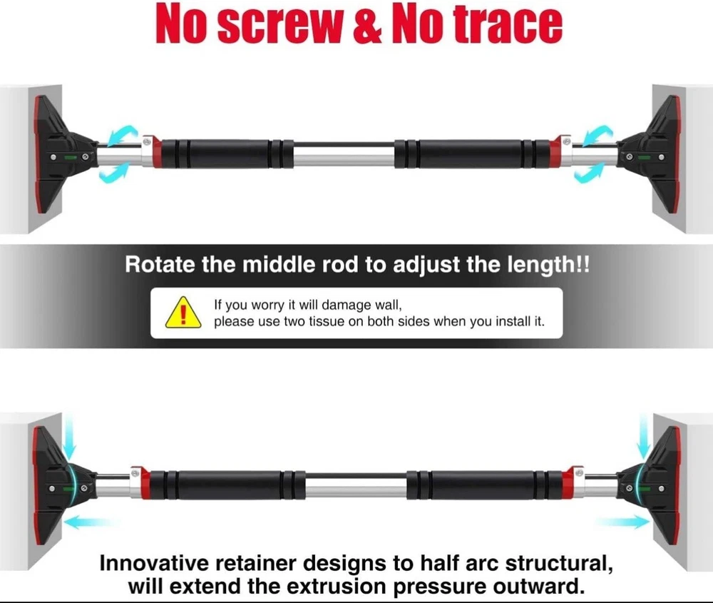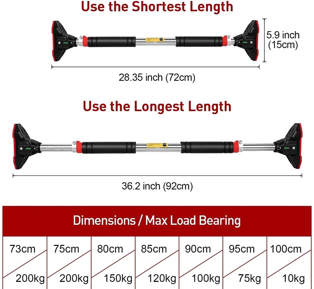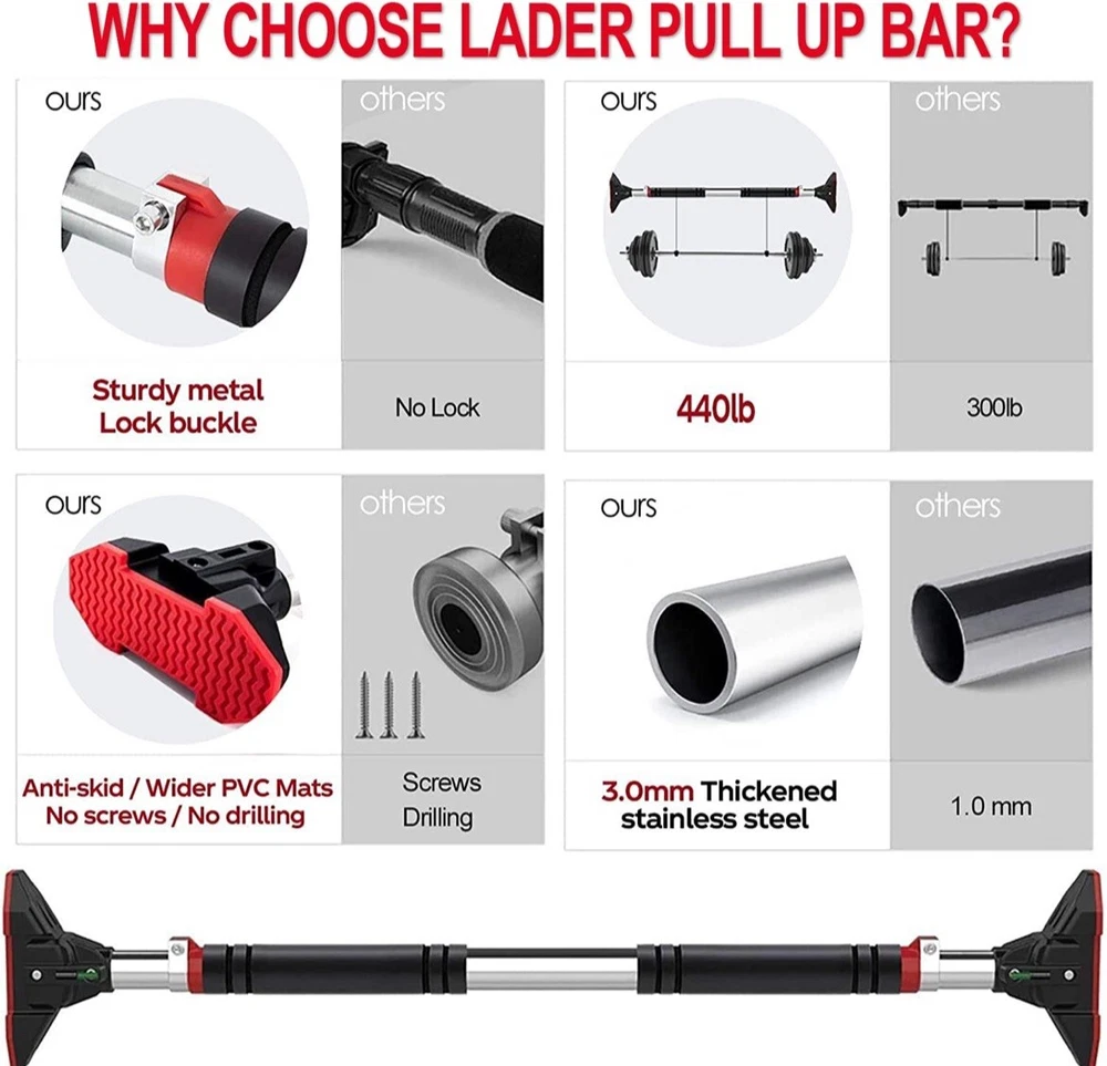 Introducing the LADER Pull Up Bar for Doorway, perfect for home use gym and training. This pull up bar is designed with foam grips and adjustable features, making it suitable for various users and their training needs. Made by the trusted brand LADER, this pull up bar is sure to enhance your strength training routine. The LADER Pull Up Bar for Doorway is ideal for those who want to add a versatile piece of equipment to their home gym. With its sturdy construction and adjustable features, it can cater to different users and their training needs. Whether you're a beginner or an experienced fitness enthusiast, this pull up bar is a great addition to your strength training routine.
