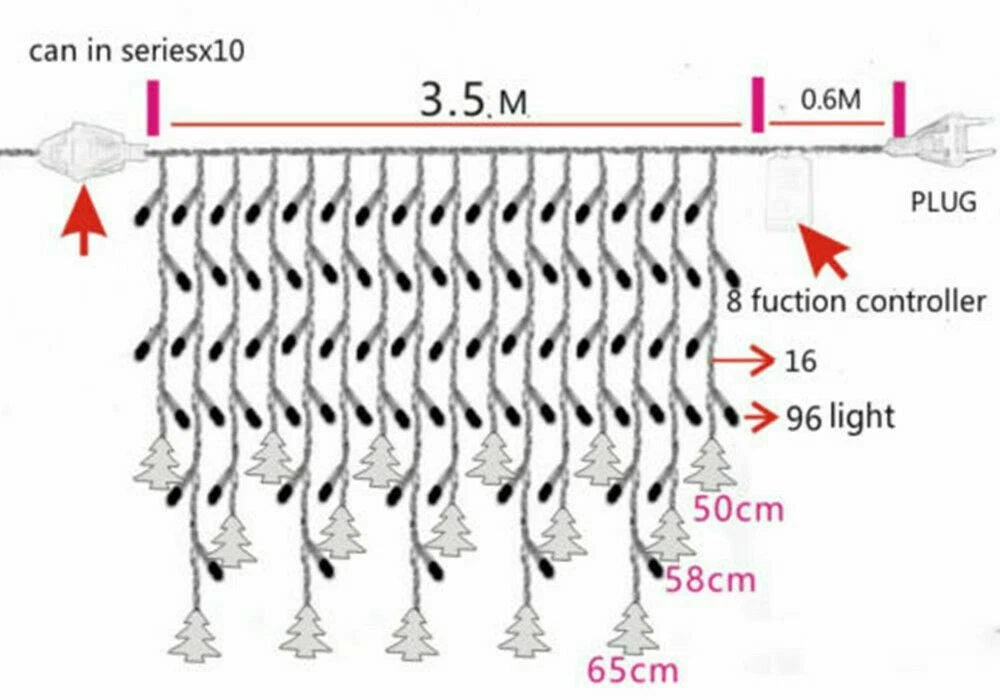 Meinuousa Your Best Online Business Partner LED Curtain Lights String Fairy Outdoor Garden Christmas Wedding Party Icicle US Product Description 11.48FTft Curtain Icicle Lights Wedding Party LED Fairy Christmas Indoor Outdoor The Plug and Control Box are not waterproof. Please use insulating tape to protect against rain. Features: -Icicle curtain lights can be great decoration for your home, patio, garden, yard or wedding, Christmas, Holiday and party etc. Create the romantic atmosphere. -IP44 Waterproof level and safety voltage operate, no worry about outdoor rainy day. -Excellent Decoration Effect for Christmas, Party, Wedding, Celebration, and all other kinds of Decoration Lighting. -The controller has 8 different lighting modes: combination, in waves, sequential, Slo-Glo, chasing/flash, slow fade, twinkle/flash, and steady on, and you can control the light modes by the controller Box. Specification: Material: PVC Connection type: Male-to-Female LED Quantity: 96pcs Cable Length: 4.0M LED Waterproof rate: IP44 Power: 6W Cable color: Transparent Plug Type: US Plug Kindly Note: No more than connect 8 pieces string light. If not light please reduce one set or try reduce more sets Payment Shipping Returns Contact Us About US - We accept the payment through :Credit, debit, and gift cards, Apple Pay, Google Pay, PayPal, and PayPal Credit. - Payment must be fulfilled within 4 days after the end of auction. - Please make sure your ebay address is correct. Or not, please correct it before payment. - If you are a big customer, Please contact with us about the item's PRICE and SHIPPING. - Your feedback & suggestion is deeply appreciated, thanks. 1. Please make sure your address in ebay is correct. 2. We will only follow your address listed in the ebay orders for the shipment. 1. We can exchange the item within 30 days after you received it if it is defective. 2. Returned item must have all original packaging and accessories. 3. Buyer are responsible for the returning shipping costs. 1. We greatly appreciate your POSITIVE feedback. 2. Negative or Neutral feedback does not resolve any underlying issues that you may be experiencing as a buyer. 3. Any question or unsatisfaction please contact us with ebay message, we will sincerely solve for you. Feedback is very important to us, if you are satisfied with us, please leave us 5 star positive feedback to us. If you h have any problem, please contact us first BEFORE you give us neutral or negative feedback, so we can try our best to help you solve your problem. All rights reserved.