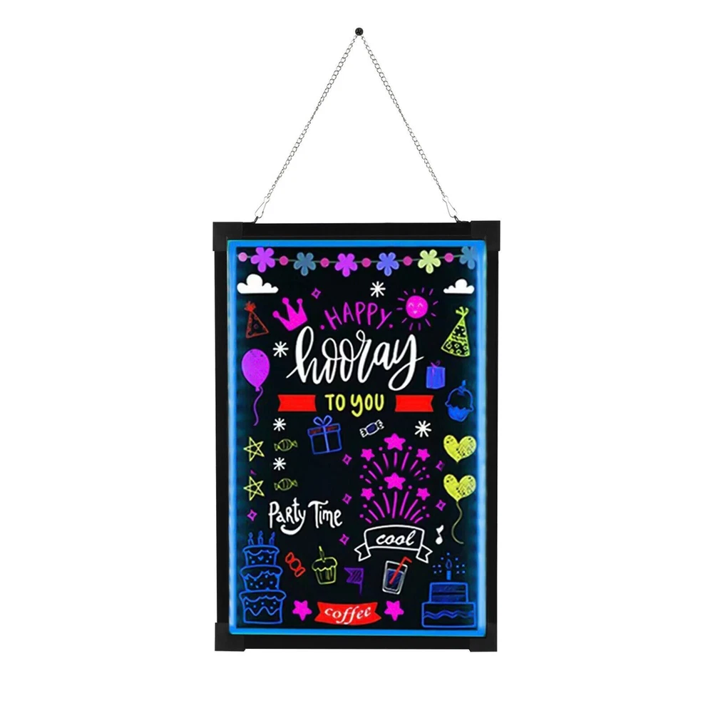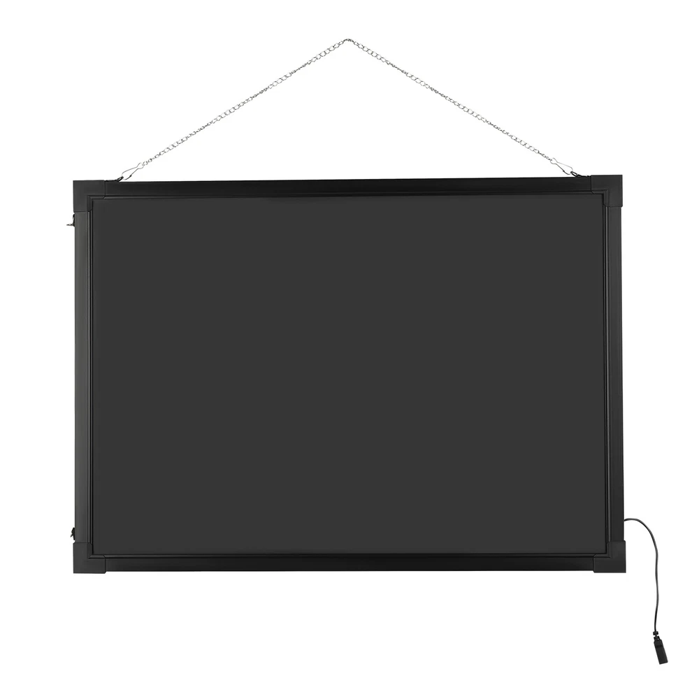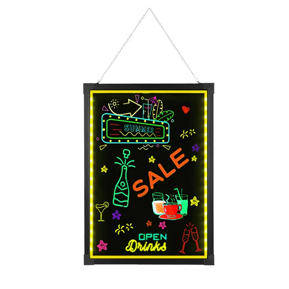 Illuminated LED Message Writing Board Specification Material: Tempered Glass, Aluminum Alloy, PP Color: Black Light Source: LED(5050) Plug: US Standard Power: 0.36W Voltage: AC110-240V DC12V 1A Power Supply: Plug-in/8*AA Batteries(Not Included) Light Colors: Red, Green, Purple, Yellow, Pink, Blue, White Fluorescent Colors: Red, Green, Purple, Yellow, Pink, Blue, White, Orange Number of Light Effects: 18 Length of Power Cord: 2m/6.56ft Working Temperature: -40~60℃/-40-140℉ Product Size: 50*70cm/20*28in 40*60cm/16*24in 60*80cm/24*32in Package Included 1x Led Writing Board 8x Fluorescent Pens 1x Remote Control 1x USB Controller 1x Cloth 1x Clear Chain 1x Power Cord with Plug 1x English User Manual LED Light Up Writing Board Flashing Illuminated Message Menu Sign Board 3-Size Description Description This LED message writing board with 7 color variations and 18 combinations of light effects can attract customers' attention with its eye-catching highlighter and brilliant light effects to bring excellent promotional effects. Such an innovative and unique promotion assistant is a must-have for milk tea stores, bars, and restaurants. Specification Material: Tempered Glass, Aluminum Alloy, PP Color: Black Light Source: LED(5050) Plug: US Standard Power: 0.36W Voltage: AC110-240V DC12V 1A Power Supply: Plug-in/8*AA Batteries(Not Included) Light Colors: Red, Green, Purple, Yellow, Pink, Blue, White Fluorescent Colors: Red, Green, Purple, Yellow, Pink, Blue, White, Orange Number of Light Effects: 18 Length of Power Cord: 2m/6.56ft Working Temperature: -40~60℃/-40-140℉ Type Middle Size Small size Large Size Size 50*70cm/20*28in 40*60cm/16*24in 60*80cm/24*32in Package Size 77.8*59*5.5cm/30.62*23.22*2.16in 66*48.5*5.5cm/25.98*19.09*2.16in 86.5*59*5.5cm/34.05*23.22*2.16in Gross Weight 4kg/7.71lbs 3kg/6.61lbs 5.5kg/12.12lbs Net Weight 3.5kg/7.71lbs 2.5kg/5.51lbs 5kg/11.02lbs Package Included 1x Led Writing Board 8x Fluorescent Pens 1x Remote Control 1x USB Controller 1x Cloth 1x Clear Chain 1x Power Cord with Plug 1x English User Manual Key Features High-quality Materials : This LED message writing board is made of a white translucent tempered glass panel, aluminum alloy frame, and PP back panel. These high hardness and impact-resistant materials make the product sturdy and durable. Convenient and Harmless : The included highlighter will be wiped clean easily without dirt and dust keeping you away from the harmful chalk dust of traditional chalk, which is more healthy and convenient. Impressive and Attractive : The product features 7 colors of light and 18 combinations to bring you a dynamic, colorful and attention-catching display to attract more customers' attention for you. The black PP back panel contrasts with the colorful highlighter and light effect, presenting a visual feast. Energy-saving and Environmental Friendly : The product's power of only 0.36 watts makes it more energy-saving and environmentally friendly as it does not consume too much power even for long-time use. The long-life, recyclable LED light source is more eco-friendly. DIY Fun : Equipped with eight colors of highlighters and an easy-to-wipe glass panel, the message writing board is also an ideal tool for drawing and doodling. Travel with your child to the ideal kingdom of imagination and color! Large Area : The enlarged LED message writing board (3 sizes) provides you with enough space to write slogans, prices, products, and other content to attract customers. And the larger layout with gorgeous lighting is more eye-catching. Simple Operation : The product is equipped with a remote control that allows you to adjust the light color and combination of light effects with just one click, which is very convenient and flexible. Dual Power Supply : The product can be powered by both a power cord and battery to suit different scenes indoors and outdoors. Multi-functional : This LED message writing board is a good substitute for conventional blackboard, teaching board, party decoration, electronic message board, light-up whiteboard, wedding decoration board, digital signage, etc. Protective Packaging : The product is carefully packed in cardboard boxes to avoid damage during transportation. The protective packaging allows the product to reach you intact. Customer Service : We aim to provide quality products and services. If you have any problems, please feel free to contact us. We will reply and solve the problem for you as soon as possible. Details Hooks : Both sides of the product are equipped with hooks to allow you to hang it horizontally and vertically to present different effects. Anti-collision Corners : The four corners of the product are equipped with anti-collision protectors to effectively prevent collisions. Transparent Chain : Transparent chain with hooks allows you to hang the writing board easily. Controller : Connect the controller to the LED board, and adjust the light by pressing the button above. When using the remote control, you can adjust the light and switch by pointing at the controller. Application This product is used for decoration, billboards, blackboards, etc. at home, in shops, bars, restaurants, etc. How to Use the Fluorescent Pen 1. Cover the pen with the cap and shake it up and down several times to make the ink flow more smoothly. 2. Press the pen tip up and down against the contact surface. 3. The pen is ready to write when the ink comes out. 4. Please remember to cover the pen after use to prevent staining elsewhere. Notes Wiping with a towel dipped in water is not recommended. Please use the included cleaning cloth. Please read the user manual carefully before use. Please note that the batteries are not included because of aviation safety policy, you need to prepare eight AA batteries. Please allow the slight color difference caused by the shooting light and 1-3cm error due to manual measurement. Please make sure you do not mind before you order. Welcome to the yiyiukmall ! We are committed to 