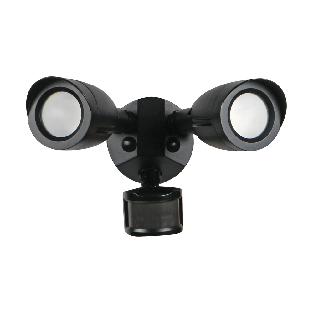 LED Security Light - Dual Head - Motion Sensor Included - Black Finish - 3000K. Our popular dual head security lights now come in a bullet head style and can be mounted on both recessed or external junction boxes. For residential and commercial use. Made of durable die cast aluminum, fully articulating heads move to adjust and deliver 50K hours of superior long-lasting light. IP65 rated, Wet Location Rating, California Title T24 compliant and ENERGY STAR® certified. Lawful for sale in California ENERGY STAR Certified Integrated Motion Sensor With Adjustable Settings Die-Cast Aluminum Body UV stabilized powder coated finish IP65 2KV SURGE PROTECTION Free Shipping Over $49.99* Details LED Security Light Dual Head With Motion Sensor Black Finish 3000K Product Description: LED Security Light - Dual Head - Motion Sensor Included - Black Finish - 3000K. Our popular dual head security lights now come in a bullet head style and can be mounted on both recessed or external junction boxes. For residential and commercial use. Made of durable die cast aluminum, fully articulating heads move to adjust and deliver 50K hours of superior long-lasting light. IP65 rated, Wet Location Rating, California Title T24 compliant and ENERGY STAR® certified. Lawful for sale in California ENERGY STAR Certified Integrated Motion Sensor With Adjustable Settings Die-Cast Aluminum Body UV stabilized powder coated finish IP65 2KV SURGE PROTECTION