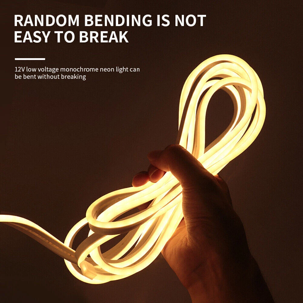 12V COB LED Strip Lights High Density Tape Cabinet Kitchen Light Self Adhesive 5.99 USD Free shipping Electric Mosquito Fly Swatter Handheld Zapper Killer Bug Pest Insect Wasp Racket 14.99 USD Free shipping Portable USB Rechargeable Neckband Lazy Mini Hanging Dual Cooling Neck Fan USA 12.99 USD Free shipping Portable Hanging Neck Sport Fan Lazy Neckband USB Rechargeable Mini Fan Personal 8.89 USD Free shipping Electric Mosquito Insect Killer Fly Bug Zapper LED Light Trap Pest Control Lamp 11.99 USD Free shipping Heavy Duty Expandable Garden Hose Pipe Spray Gun Flexible Expanding Stretch Pipe 27.89 USD Free shipping Lazy Neck Hanging Dual Cooling Portable USB Rechargeable Neckband Mini Fan US 8.89 USD Free shipping 5G Wifi Wireless Security Camera System Outdoor Home Night Vision Cam HD 1080P 25.69 USD Free shipping Portable Neckband Lazy Neck Hanging Dual Cooling Mini Fan USB Rechargeable US 9.59 USD Free shipping 360° Wireless Security 1080P IP E27 Light Bulb Camera Wi-Fi IR Night Smart Home 19.99 USD Free shipping Portable Hanging Neck Mini Fan Sport Fan Lazy Neckband USB Rechargeable 14Blades 8.99 USD Free shipping LED Desk Lamp USB Rechargeable Table Lamp Hanging Magnetic Reading Night Lights 15.89 USD Free shipping LED Strip Lights Flexible Neon Flex Rope Lights Waterproof Outdoor Lighting 12V Features: ►100% Brand new! ►12V low voltage silicone LED strip lights rope, flexible lamp belt features heat-resistant, waterproof, corrosion, weather resistant and has prominent anti-UV ability than traditional PVC , ensures your security also make this led light strip works longer. ►Upgraded LEDs and side-brightness design make waterproof neon light strip shine brighter than others, 120 degrees projection range offer large illumination coverage. ►Cuttable neon rope lights, 2.5cm(0.98in)per cut, please buy extra silicone glue to stick our lights on anywhere you like, 360 degree bendable, you could cut to DIY special residential decoration/design unique commercial sign. ►Using premium 2835 chips, 120LEDs/M, brighter and more efficient. Our dot-free LED neon light fixture, evenly luminous, are great for advertising signs, letter sign, display signage, outlines, table/desk/bed/car/wall decoration and more, fit for indoor/outdoor/all year round. Specifications: Input Voltage: DC 12V LED Type: SMD 2835 LED Quantity: 120LEDs/M Power: 12W/M Waterproof Rate: IP67 Beam Angle: 120° Color Temperature: Cool white, warm white, blue, red, green, yellow, pink Cutting Unit Length: About 2.5cm/0.98" Size(W*H): About 12x6mm/0.47x0.24" NOTE:The red and black lines do not necessarily correspond to the positive and negative electrodes Pls note : 1 meter must be connected neon 12V, 12W of power, two meters must be connected to 12V, 24W, and so on. If the power is less than the power lights with lights may be easily broken, shortened service life If the contact does not correspond 12V power wattage lamp can be lit with, but soon will be used for a long bad Attentions: 1. Please allow tiny size deviations due to human measurement. 2. Due to the effect of light and monitor's brightness, there may be slight differences between the color tone of the photo and the actual item! 3. Cutting distance: 2.5cm(0.98in) per cut, with marks on the LED strip. 4. We sell LED light strip only, other accessories like power supply, connectors, sticky glue and etc are not included.