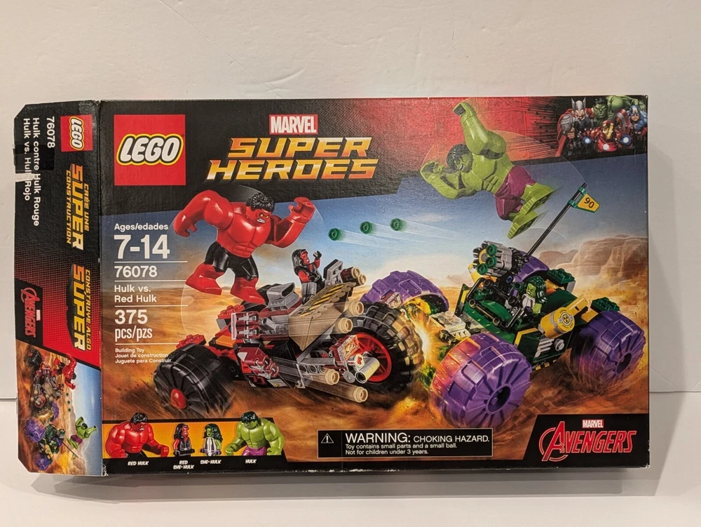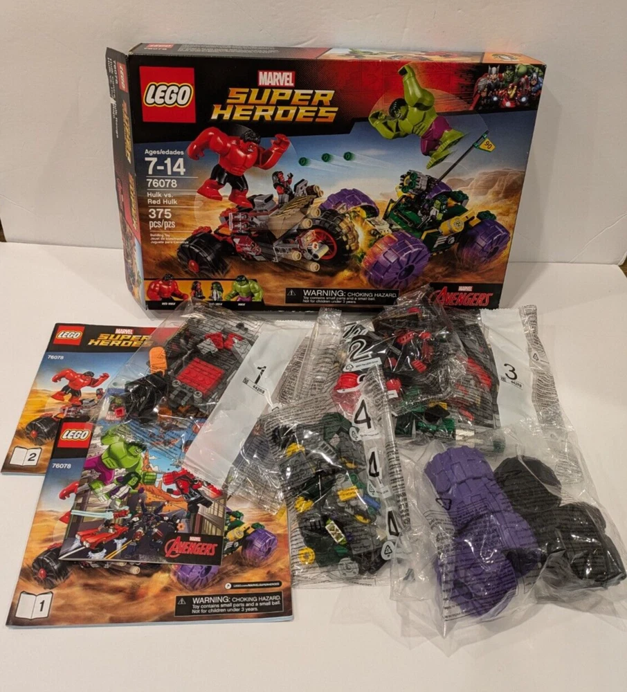 Unleash the power of the Avengers with the LEGO Marvel Super Heroes Hulk vs. Red Hulk set, model 76078. This action-packed set features the iconic clash between two of Marvel's mightiest figures, set against a backdrop of vivid, multicolor scenery. Whether you're recreating epic battles or displaying your superhero collection, this set is a must-have for fans. Included in the box is the original manual, which provides step-by-step instructions to guide you through building your very own showdown between the Hulk and Red Hulk. Constructed from durable plastic and designed for builders aged 5 and up, this partial set is a dynamic addition to any LEGO enthusiast's repertoire, celebrating the enduring legacy of the Avengers.All 5 bags are sealed and exactly as pictured.There should be 9 bags so it is a partial set.