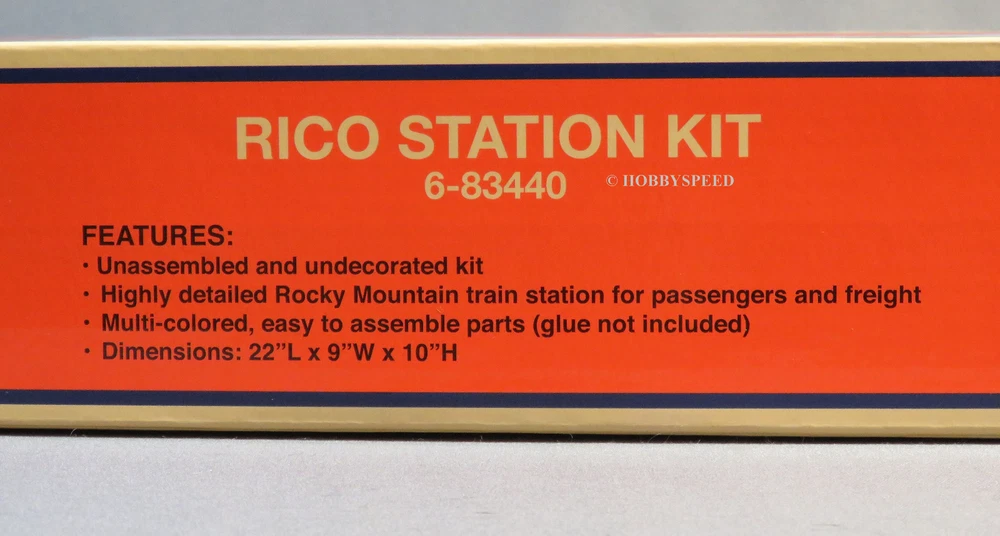 LIONEL: 6-83440 Rico Passenger Station KIT One of Lionel's favorite passenger stations, the Rico Station is now available in an easy to assemble kit. The passenger section has a high-peaked gabled roof with chimney and the broad overhangs are decorated with ornate details, typical of its time period. Parts molded in color for easy assembly. Highly detailed Rocky Mountain train station for passengers and freight Multi-colored, easy to assemble parts (glue not included) PRODUCT SPECIFICATIONS Scale Type: Traditional Product Length: 22" Product Width: 9" Product Height: 10" Most Recent Catalog: 2016 Lionel Volume 2 Catalog NEW! NEVER been used! Will run your Lionel, Kline, MTH, Weaver, MDK, or any O/O27 trains! Gauge: O -027 Gauge. Check out our eBay Store for more NEW Lionel, MTH, Bachmann, Atlas and more. We combine shipping on multiple items!! Insurance is Included in S&H Price Please wait for our invoice before payment is sent. We offer discount shipping on multiple items but can ONLY combine shipping if you wait until you are done bidding and receive our final invoice to pay. All items must be paid within 7 days. For Great Customer Service click the " Contact seller " link in our listing! Shipping price is for Domestic USA only. Hawaii, Alaska, APO's, and Puerto Rico may incur additional S&H International: We Ship Worldwide HOBBYSPEED Value Added Authorized Lionel Dealer INDIANA, PA UNITED STATES OF AMERICA