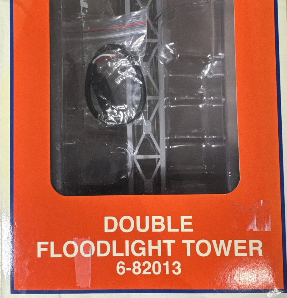 Open box. Never installed nor used. Excellent mint shape. Tested and verified operational. The Lionel Double Floodlight Tower is a pre-built, silver-colored accessory for model railroads in a 1:48 scale. It features two floodlights that can be easily plugged in and controlled using an analog system. Suitable for ages 8-11 years, this plastic unit from China is part of the Plug-N-Play series by Lionel, designed to enhance the realism of train track layouts.