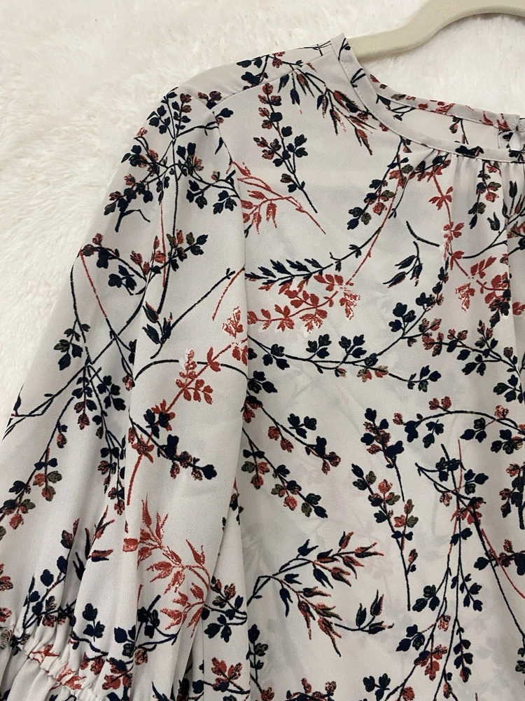 Apt 9 Stretch Womens XL Brown Dotted Button Collared Pleated Vneck Blouse! A6461