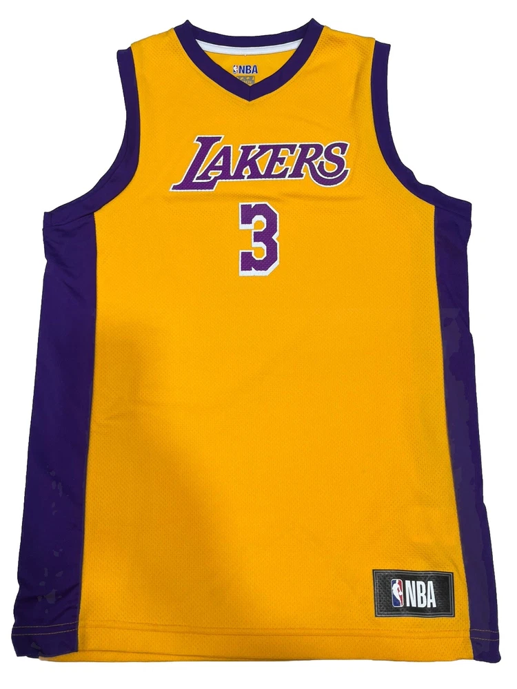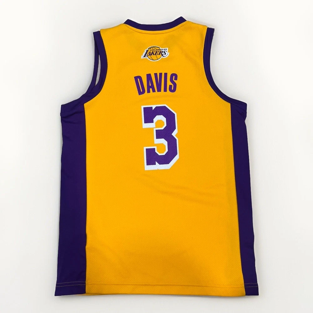 Carry the spirit of the court with the Los Angeles Lakers Anthony Davis NBA Youth Large Replica Basketball Jersey. A vibrant gold color and the iconic Lakers' logo celebrate the talent of Anthony Davis, while the unisex design makes it a versatile addition to any young fan's collection. Made to mirror the Swingman Jersey, this piece is a stylish nod to the regular season and the energy of the game. Crafted with care, this jersey is a product of Jersey's renowned craftsmanship, ensuring a durable and comfortable wear for any basketball activity or casual fan day. Whether hitting the hoop or cheering from the sidelines, this jersey is a true homage to the athlete and the sport in a size that's perfect for youth in the large range.