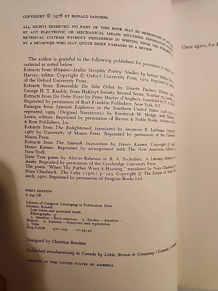 "Lost Tribes and Promised Lands: The Origins of American Racism" by Ronald Sanders is a vintage hardcover book published by Little, Brown in 1978. This first edition book explores the social history and relations in America, focusing on the origins of racism. It measures 9.5" in length and 6.5" in width, with 443 pages and a weight of 1.95 pounds. The book is in English and includes features like a dust jacket. This is a very good condition hardcover with dust jacket. It does have some shelf wear scratches and scrapes bending and wrinkles fading and yellowing of pages. No markings or hilighting in text