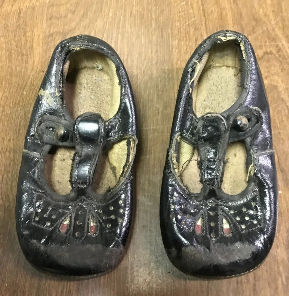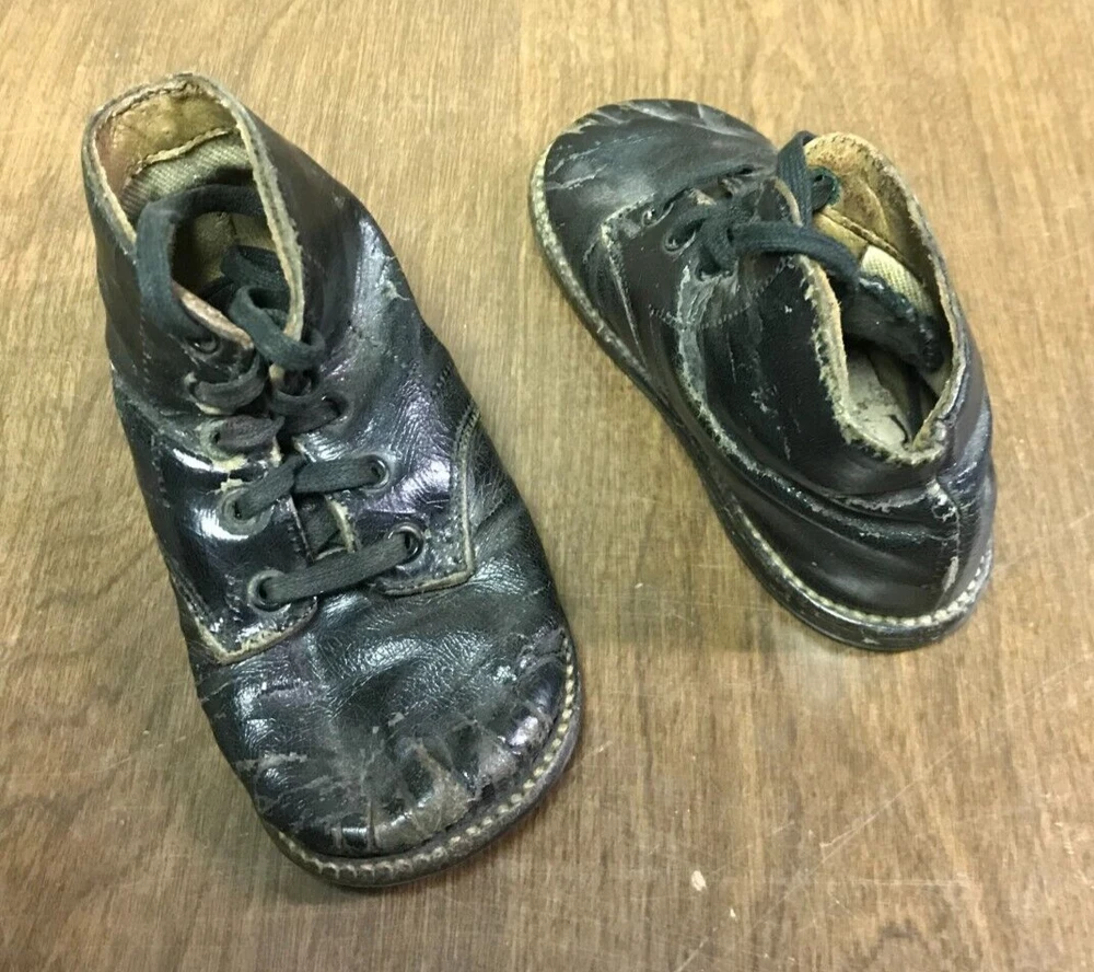 Antique Victorian Black Leather High Top Baby/Toddler Shoes 1920s