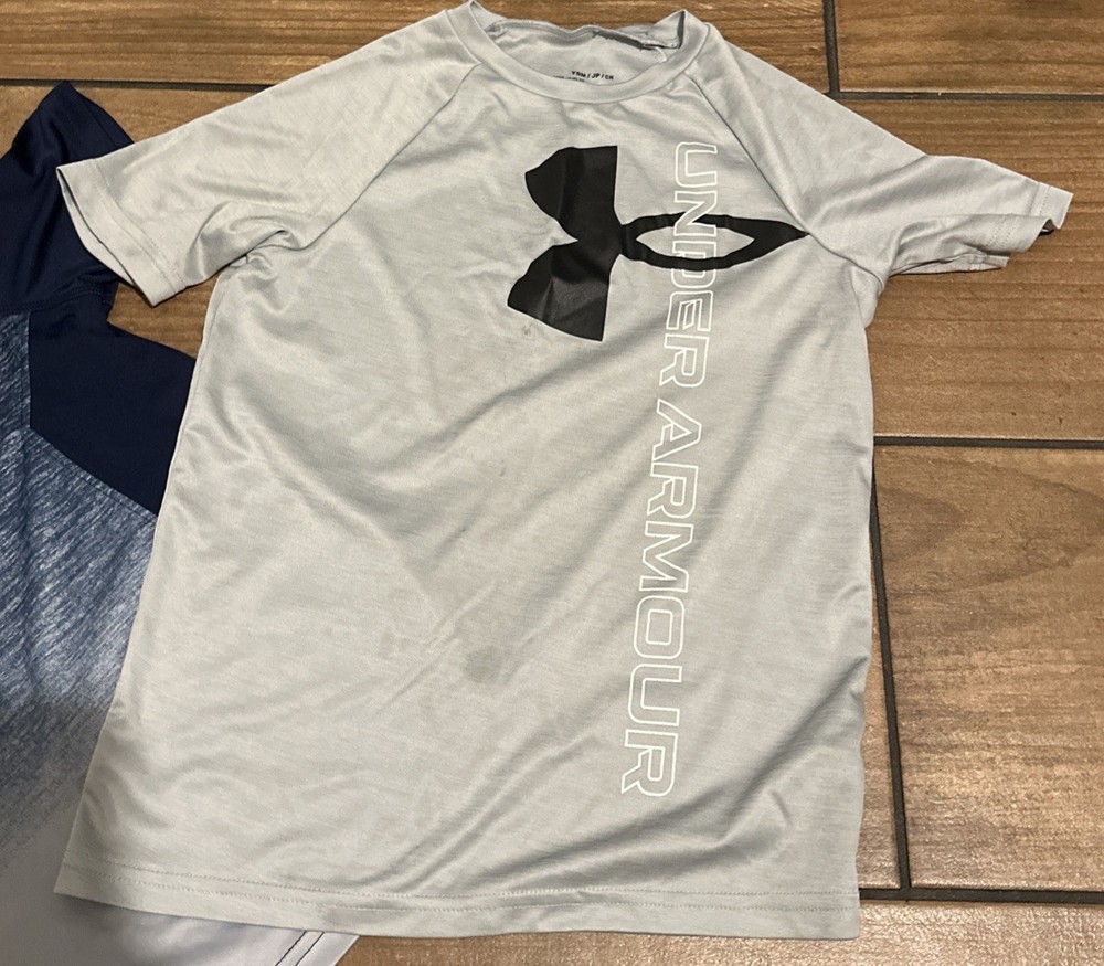 HomeLOT OF 2 Under Armour Boys UA HeatGear Short Sleeve Shirt Gray& Blue YSMALL A5