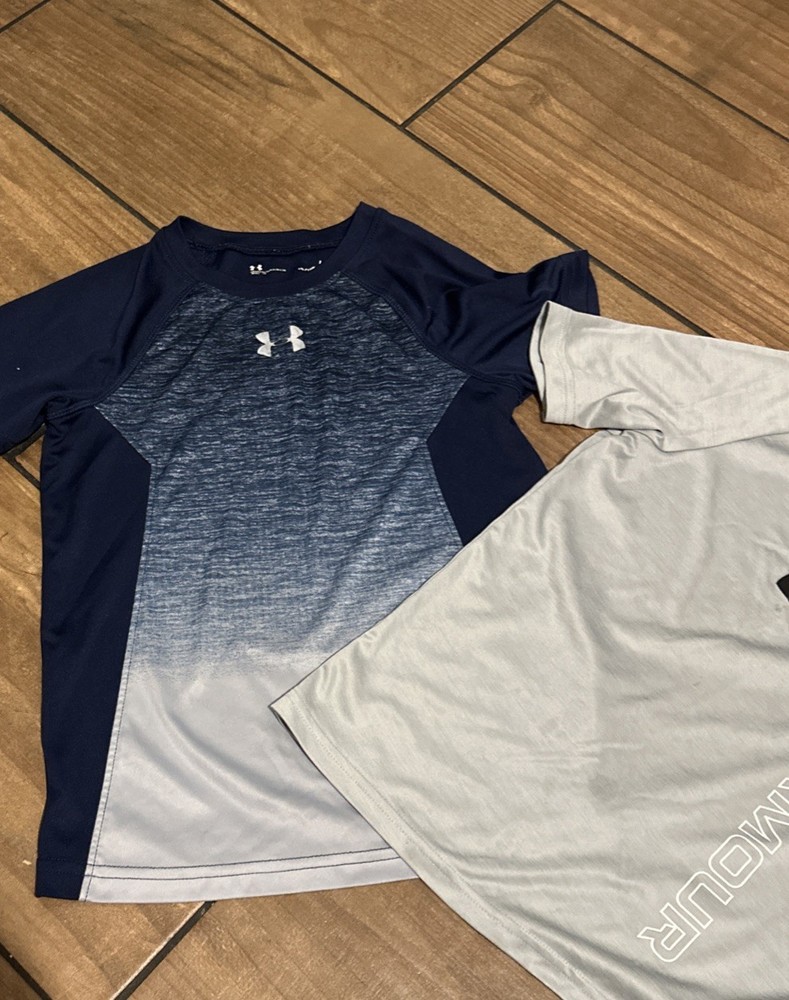 LOT OF 2 Under Armour Boys UA HeatGear Short Sleeve Shirt Gray& Blue YSMALL A5
