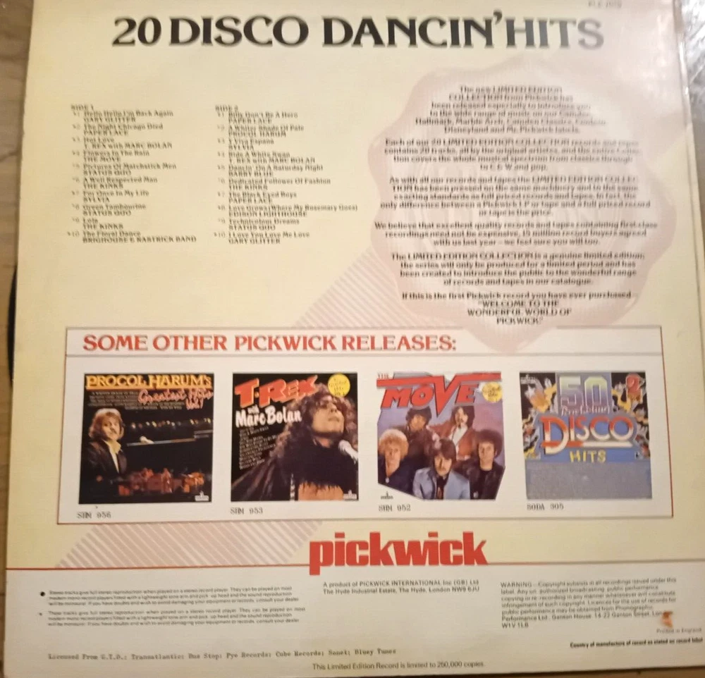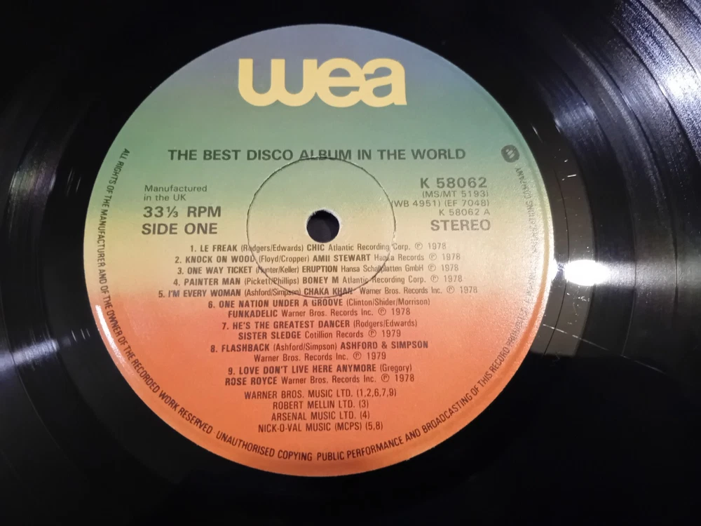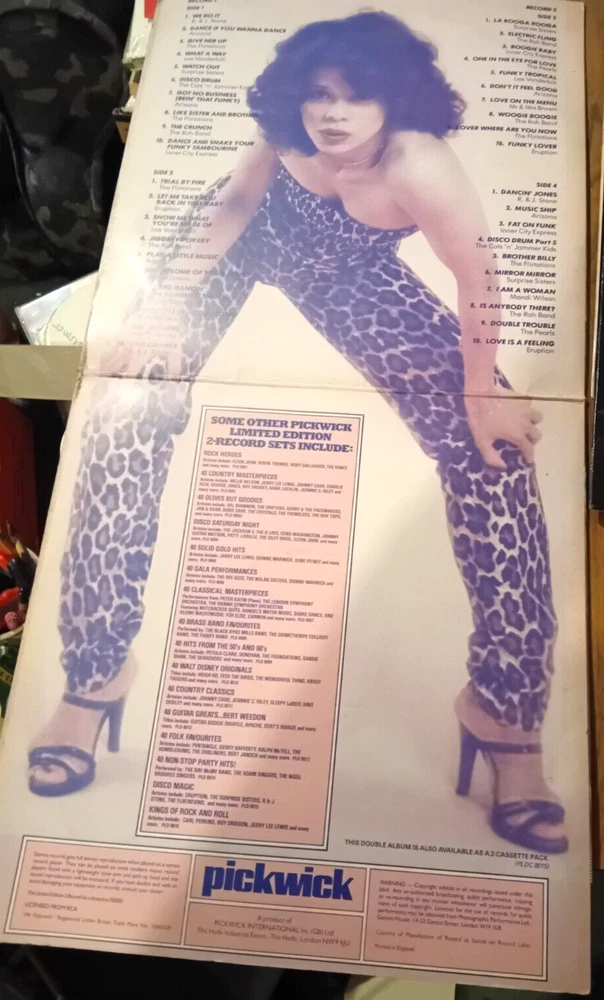 LOT OF 4 DISCO LP'S + 12" SINGLE ODYSSEY NATIVE NEW YORKER ALL PICTURED AND LISTED 1. 20 DISCO DANCIN HITS PICKWICK PLE 7010 1974 STEREO COVER VG LABELS EXCELLENT VINYL EXCELLENT 2. BEST DISCO ALBUM IN THE WORLD ORIGINAL INNER SLEEVE WEA K58062 STEREO 1979 COVER VG LABELS EXCELLENT VINYL EXCELLENT 2. 40 TRACKS DISCO MAGIC DOUBLE LP GATEFOLD SLEEVE PICKWICK PLD 8015 1978 COVER VG LABELS EXCELLENT VINYL EXCELLENT 4. DON'T WALK BOOGIE EMI EMTV 13 STEREO 1978 COVER VG LABELS EXCELLENT VINYL EXCELLENT 5. PLAYTIME WITH WALLY WHYTON NURSERY RHYMES SONGS DANCES TONGUE TWISTERS HALLMARK/PICKWICK SHM 818 STEREO 1973 5. 12" SINLE ODYSSEY NATIVE NEW YORKER/EVER LOVIN SAM RCA DDC002 STEREO 1977 COVER VG LABELS EXCELLENT VINYL EXCELLENT P&P UK IS £5 (FOR UP TO 7 LP'S UK) EUROPE £20 TRACKED REST OF WORLD £35 TRACKED OR ECONOMY £18