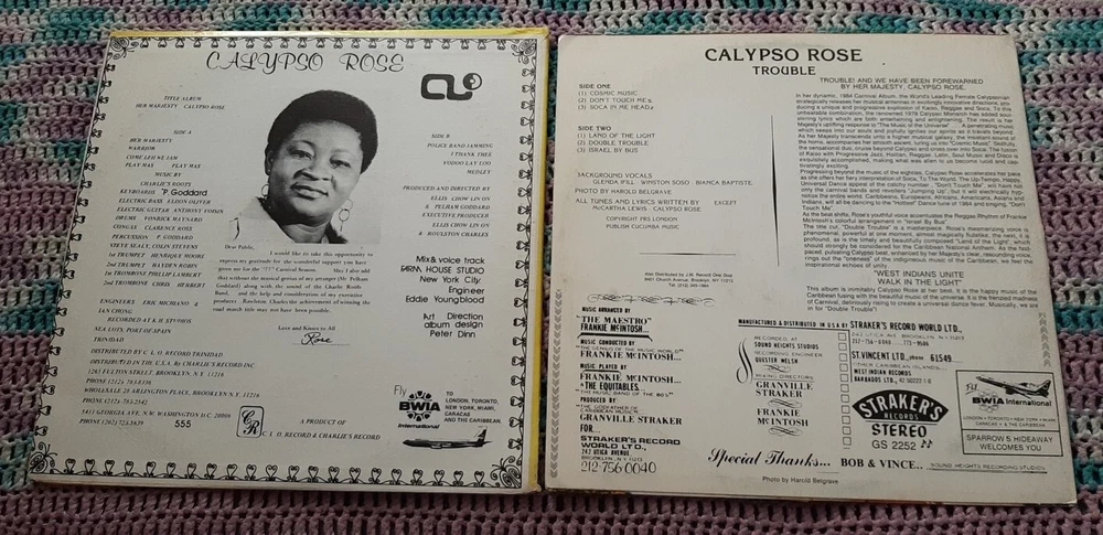 LOT of 2 Calypso Rose LP Her Majesty CR 444, Trouble Strakers GS 2252 ex. Vinyl is in overall excellent condition with a few minor light scratches and marks, gloss, vinyl of Her Majesty has some minor pressing bubbles. Covers are in overall very good condition with seam splits, some edge and corner wear, surface dirt, creasing and wear.