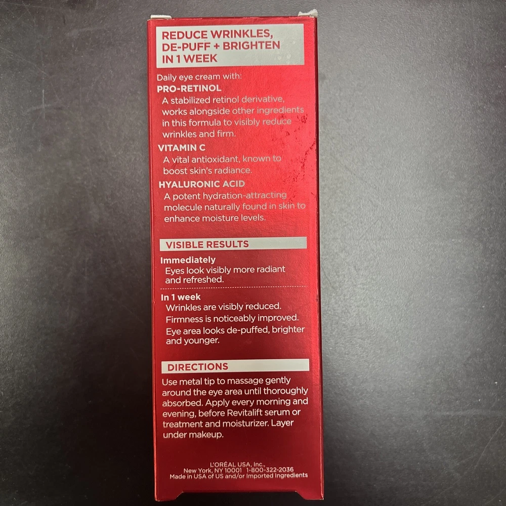 L'Oreal Paris Revitalift Triple Power Anti Aging Eye Cream Hyaluronic Acid 0.5oz.