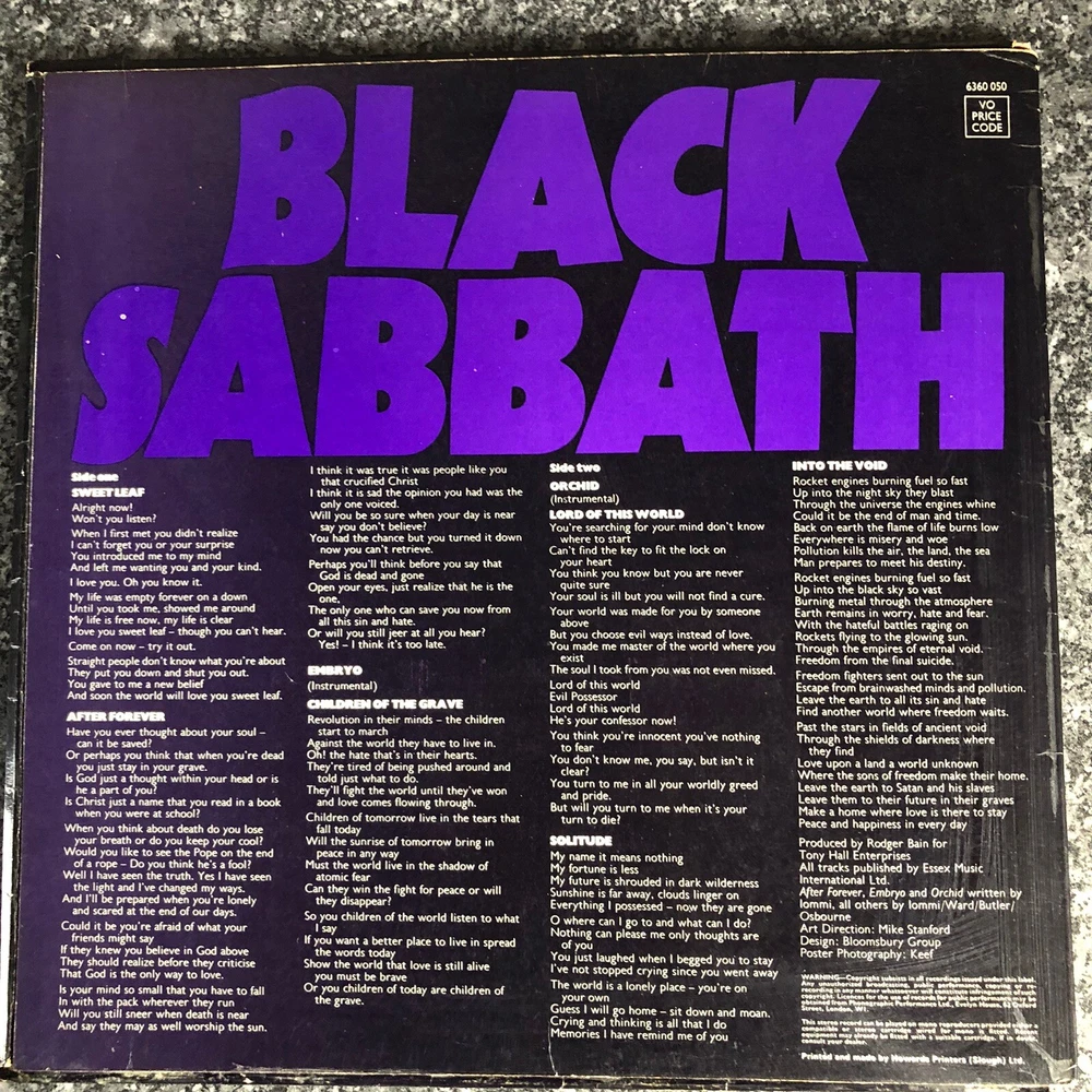 Tracklist Show Credits A1 Sweet Leaf A2 After Forever A3 Embryo A4 Children Of The Grave B1 Orchid B2 Lord Of This World B3 Solitude B4 Into The Void Sleeve and inner excellent minus condition light shelf wear and flattening of the box sleeve. Item sent in clear resealable sleeve with new poly lined inner added. Replica poster is included. Labels are clean excellent condition. Vinyl has a lovely sheen few very light hairlines surface marks excellent condition superb audio a nice copy. Pro cleaned. We combine postage on all multiple orders to reduce shipping costs to our customers outside of the UK.