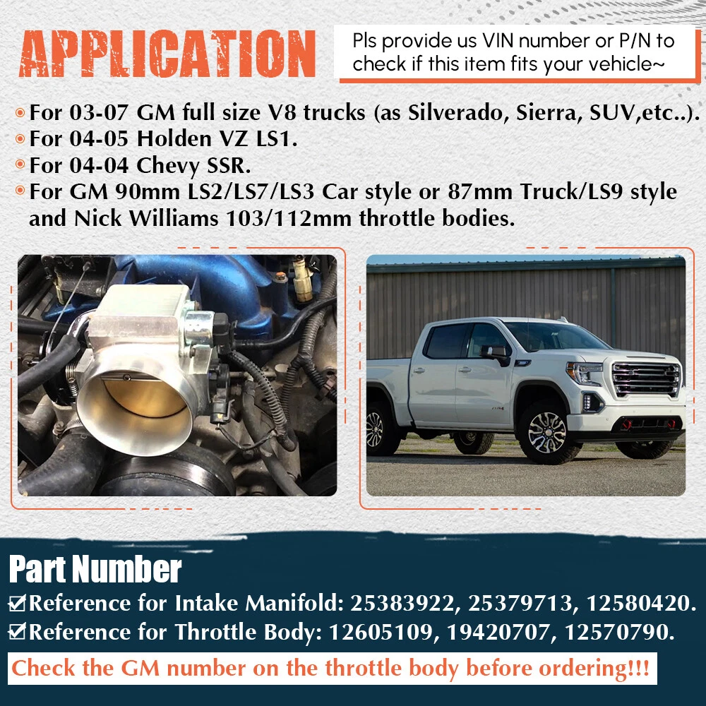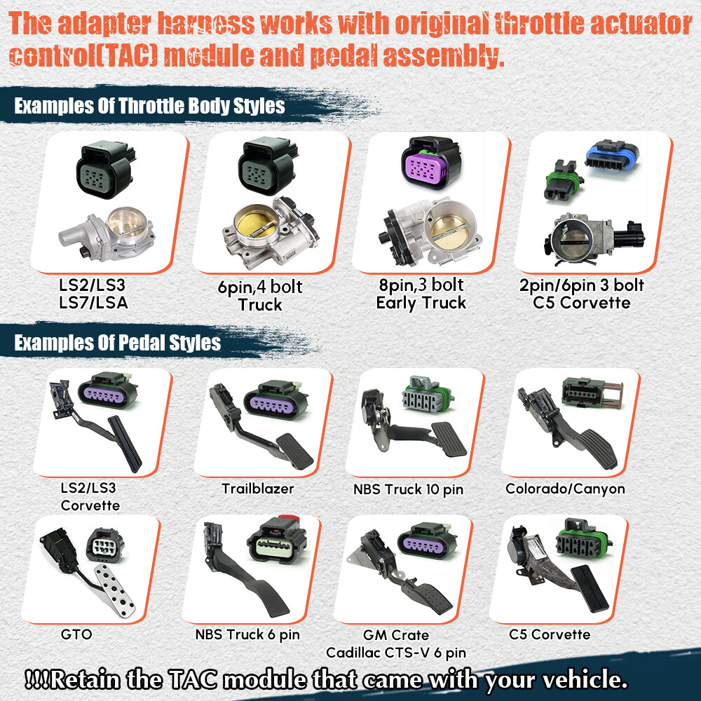 8 Pin To 6 Pin Throttle Body Adapter Harness For 03-07 GM Trucks LS1 25383922 Overview Condition: 100% Brand New Color: As the picture Material: Made of high-quality Copper & ABS. Features: 100% quality assurance tested, more responsive, less expensive, easier to install. Adapt the OEM 8 Pin GM Truck/SUV harness to GM 90mm 6 Pin throttle body. Simplifies L76, LS2, L92 and LS3 engine swaps into these LS1 vehicles(L92 may require swapping to a GM 90mm LS3 style throttle body). Works with your original throttle actuator control(TAC) module and pedal assembly. Maintains the independence of the two throttle position sensor signals. Allows the full throttle blade range to reach 100% wide open throttle. Less restriction and improved airflow for turbocharged or high output naturally aspirated applications. Provide smoother, clearer, and more responsive throttle operation. !!!Retain the TAC module that came with your vehicle. Fitments For 03-07 GM full size V8 trucks (as Silverado, Sierra, SUV,etc..). For 04-05 Holden VZ LS1. For 04-04 Chevy SSR. For GM 90mm LS2/LS7/LS3 Car style or 87mm Truck/LS9 style and Nick Williams 103/112mm throttle bodies. Not work with the following: Not fit for early 00-02 full size truck TAC systems(which use two separate plugs at the throttle body). Not fit for Non GM clones (China) and 102's with magnetic sensors. Not fit for aftermarket throttle bodies that have magnetic sensors or with sensors not calibrated to GM specifications. LS1 VZ cars Connection to a LS4 SS car will permanently damage the X-Link!! Vehicle compatibility charts are for REFERENCE ONLY. Check product type and size to match your needs. Part Number: : Reference for Intake Manifold: 25383922, 25379713, 12580420. Reference for Throttle Body: 12605109, 19420707, 12570790. Check the GM number on the throttle body before ordering!!! Items Included 1x Throttle Body Adapter Harness As pictures shown Note Provide a tracking number with every order, please buy with confidence! Please allow differences due to manual measurement. No installation guides are included, we highly recommend seeking professional installation. The color of the actual items may be slightly different from the listing images due to different computer screens. For any inquiries, please write to us. 💯After-Sales Shipping🚚 💰Payment Q & A💬 Contact Us📧 💯After-Sales For any installation or usage issues, please send us photos or videos for assistance. If you are unsatisfied, please contact us before leaving feedback. We are committed to resolving any issues and ensuring customer satisfaction. We offer free returns and exchanges within 30 days of purchase. If you need to return an item, please select "didn't like them" as the reason to ensure prompt processing. Thank you! Shipping🚚 We ship your order within 2 business days of receiving full payment. Delivery typically takes 3-7 business days to most cities. Domestic orders are shipped via USPS, UPS, or FedEx from our US warehouse and usually arrive within 3-5 business days. We ship to the address on your eBay account, not your PayPal account. Please update your eBay shipping address during checkout if it's different. We provide a tracking number for online shipment status updates. 💰Payment PayPal is the preferred payment method. Orders will be shipped after payment clears. Payment is expected within 7 days; otherwise, an Unpaid Item Dispute will be filed with eBay. Q & A💬 Q: When will the item be shipped out? A: This item will be shipped within 2 business days once payment is completed. Q: Where is my tracking number? A: Please log in to your account, click "my eBay"-->"my summary", or open your email box and find the shipping notification email. Q: How do I return an item? A: Our store accepts returns. Items must be returned within 60 days. Refunds will be given as money back. Please contact our customer service before you return an item. Contact Us📧 If you have any questions, please contact our Customer Service Team by clicking "Contact seller" in "Seller information". Emails will reply within 1 business day during business hours.