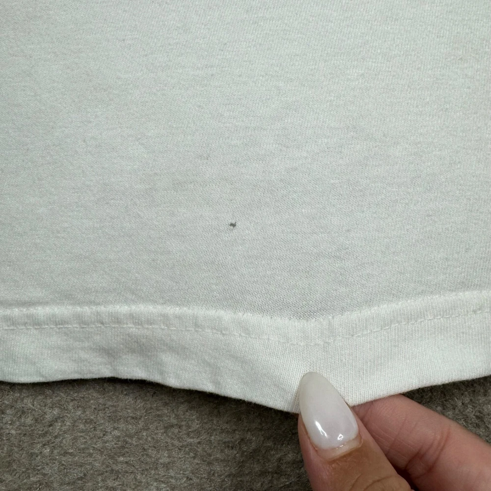 The item has dark marks at the pit area and pinhole at the bottom of the shirt, Please check the photos for the exact sizing are posted. Happy to bulk sell and combine shipping on multiple purchases won. RETURNS: Free Returns for 30 Days This item has been washed / laundered.