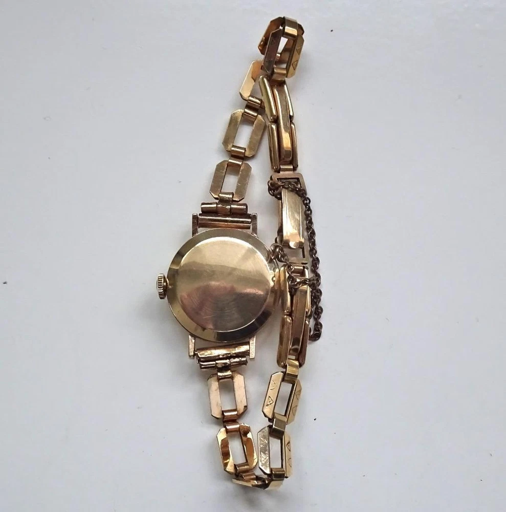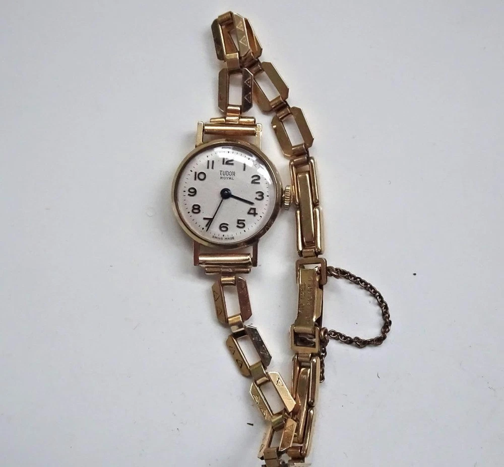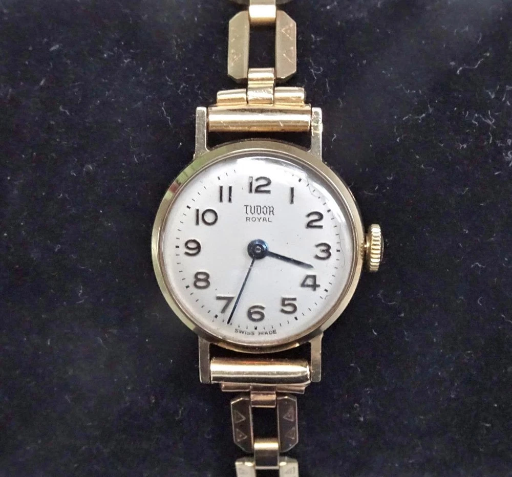 LADIES' VINTAGE TUDOR "ROYAL" (by ROLEX) 9ct GOLD 17 JEWELLED HAND WIND WATCH c1965 The watch is in superb condition. It is in full working order and keeps very good time. Hallmarked 9ct yellow gold case with a 1/10th 12ct rolled gold bracelet . The bracelet has a delicately engraved pattern on the front of the links. The crown is original with the "Rolex" coronet and the case also is Rolex branded. The hallmark is from the Edinburgh Assay Office with the date letter for 1965. The size of the watch case is 20mm in diameter excluding the crown. The watch will fit a maximum wrist size of 18cms . Champagne dial with blued hands and gold arabic numerals. Swiss made Tudor calibre 2512 hand wind movement with 17 jewels. This is a top quality vintage watch from the Swiss watchmaker TUDOR who are part of ROLEX . (3EBA4) Images sell! Get Supersized Images & Free Image Hosting Attention Sellers - Get Templates Image Hosting, Scheduling at Auctiva.com. Track Page Views With Auctiva's Counter