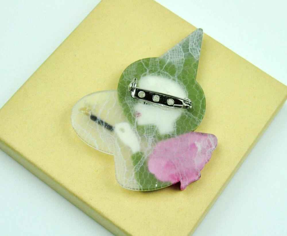 Add a touch of magic to your outfit with this stunning large acrylic fairy brooch pin. The intricate design features a colorful face and is perfect for any occasion, whether it's Mother's Day, a wedding, or just a casual day out. Measuring 3 inches long and 2.25 inches wide, this brooch is a trendy and fashionable accessory that suits any gender. The brooch is made from high-quality acrylic and is 100% brand new. It is nickel-free and doesn't cause any irritation. This brooch is a perfect gift for women, men, unisex, girls, and lady. It suits various outfits including suits, sweaters, scarves, dresses, hats, and bags. With its beautiful design and amazing features, this brooch is a must-have for any jewelry collection. All my brooches ship from California, USA.