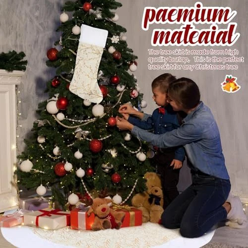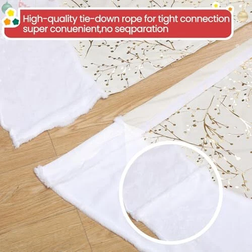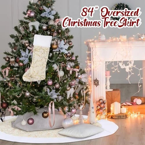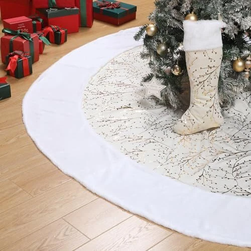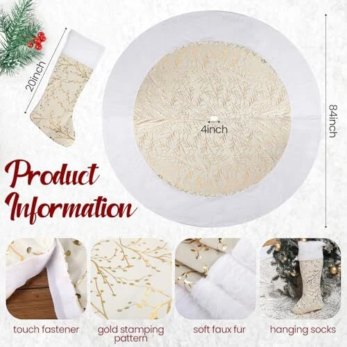 Return Policy Fast Delivery Trusted seller Large Christmas Tree Skirt with Christmas Stocking Gold White Extra 84 Inch Product Description Large Tree Skirt: this 84 inch large Christmas tree skirt and stocking set makes a striking addition to your festive decor; Its gold holly berry branch print perfectly matches with Christmas atmosp, adding charm and elegance to your festive decoration Handmade with Quality Material: crafted from warm, durable, artificial velvet, this Christmas tree skirt provides a soft and smooth touch; Made by hand, it features a light gold carpet with white fluffy faux fur edging, instantly creating a cozy winter holiday atmosp and lasting quality to be enjoyed year after year Lighten Christmas Decorations: brighten up your indoor or outdoor Christmas decorations with this large burlap tree skirt; Suitable for placing presents or ornaments on, it not only creates a beautiful tree decoration but also safeguards your floors; Match it with similarly designed Christmas stocking to create an appealing look for your Christmas tree Convenient Fastening: featuring a hidden hook and loop fastener design, this plush Christmas skirt can be secured easily, providing a more stable and perfect looking tree; When not in use, you can detach it easily and fold it up for convenient storage Versatile Use: add festivity to any space, like living room, bedroom, garden, hotel, bar, or office with this Xmas tree skirt base; Its versatile nature allows it to be applied as a home rug or kitchen apron post Christmas, or you can simply fold it up and save it for the next festive season Shipping Returns Payment Shipping Shipping is FREE to all addresses other than APO/PO boxes in the lower 48 states. All our stock ships from US-based warehouses. Shipped via USPS or UPS (depending on location and package weight) Unless stated otherwise, all orders will ship within 24-72 hours of your payment being processed. Check our feedback to see the great reviews of FAST shipping we offer. Returns Seller does not accept returns Payment We currently accept payment via eBay managed payments only. Once payment is cleared, we will dispatch your shipment within 1-3 business days. Please refer to the "Shipping" tab for more information regarding shipping speed to your destination.