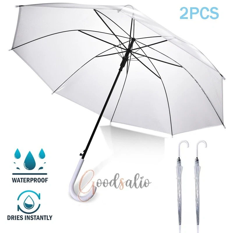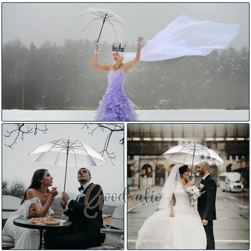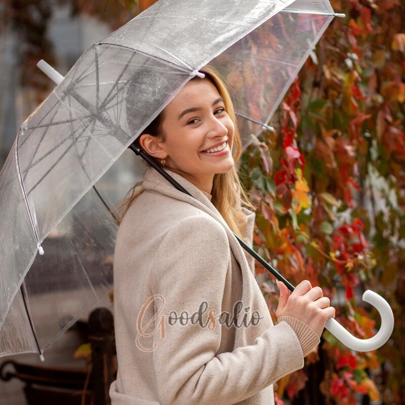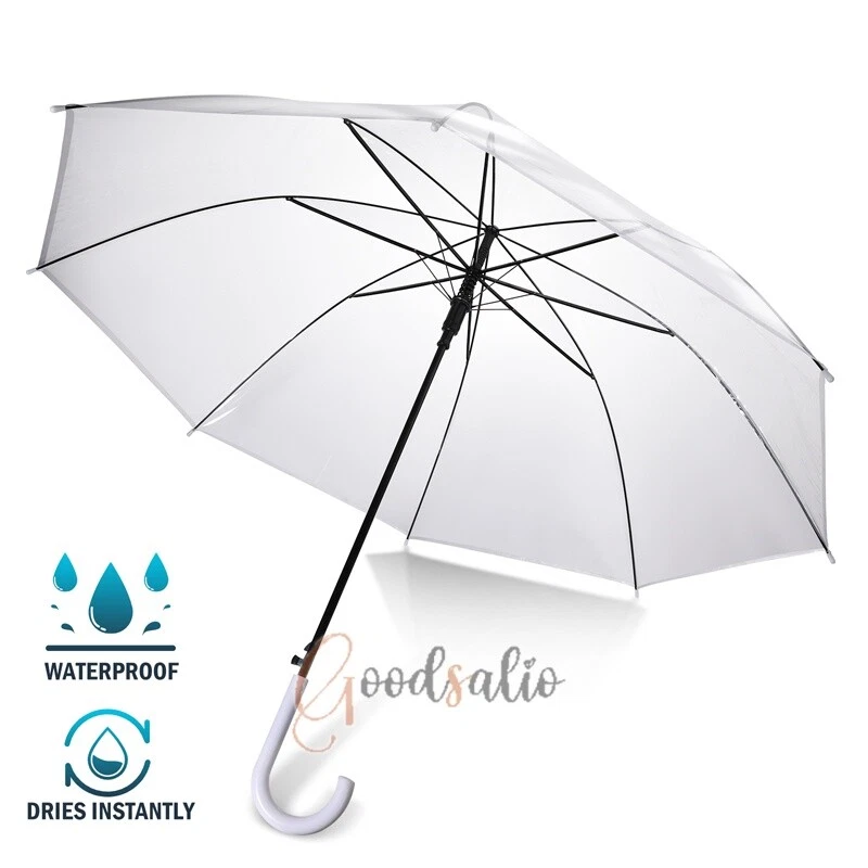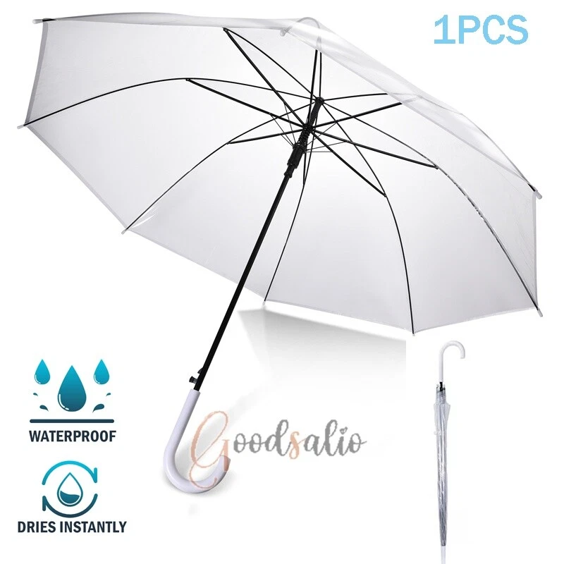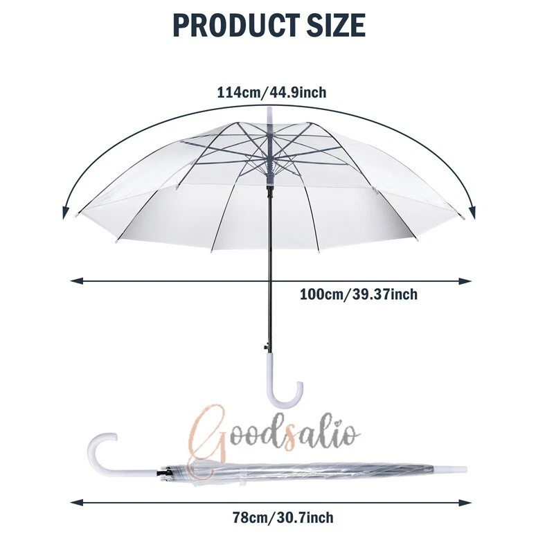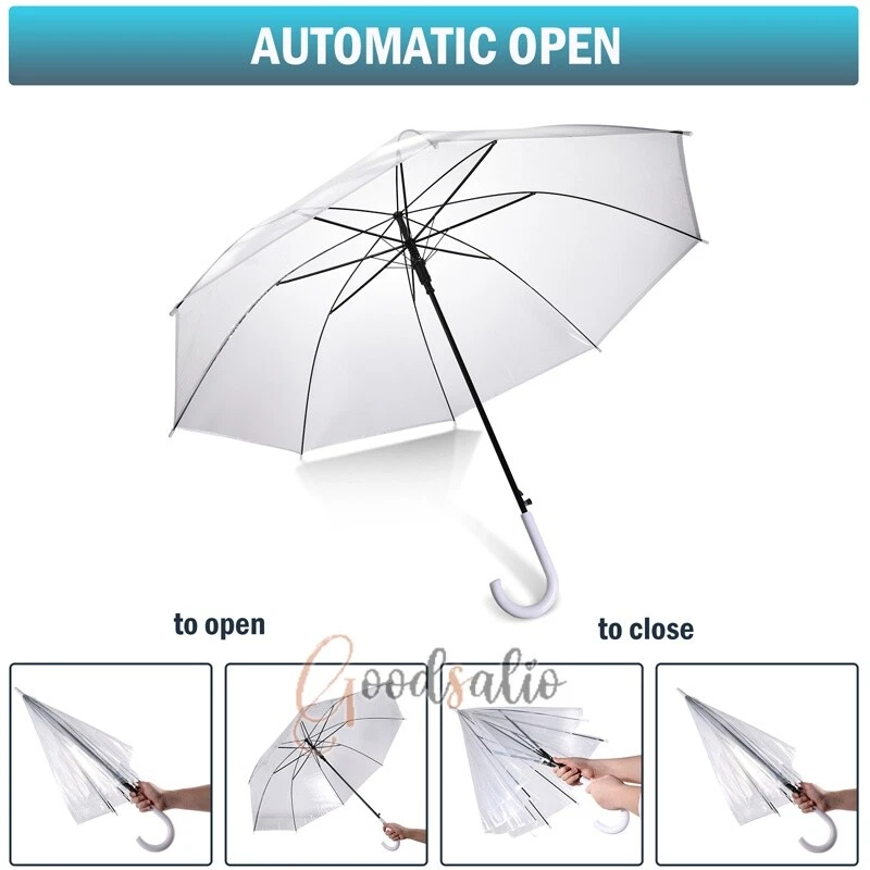 Large Clear Transparent Dome Umbrella With White Handle Automatic Photography US ★SPECIAL TIPS: √ Ship within 24 hours Via USPS from NJ ,USA √ 100% New & Excellent Quality √ Professional Customer Service √ Strictly QC, Each set was fully tested before shipping √ Offer delivery with Tracking Number If not 100% satisfied with our products, no-questions asked, we offer 30-day free return & money back. Specifications: Open style: Auto Open Umbrella collection method: manual Umbrella cloth material: rubber cloth Umbrella material: steel Middle rod material: steel Umbrella handle material: plastic Rib number: 8 Total length of umbrella: 78cm/30.7inch Open maximum diameter: 114cm/44.9inch Umbrella color: transparent Umbrella handle color: black Package includes: 1 x Handle Transparent Umbrella