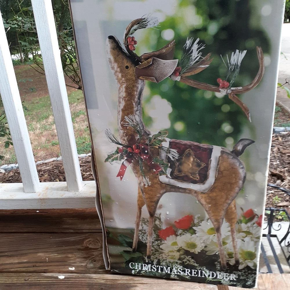 Large Metal Tin Christmas Reindeer Holiday Figurine Winter Home Decor