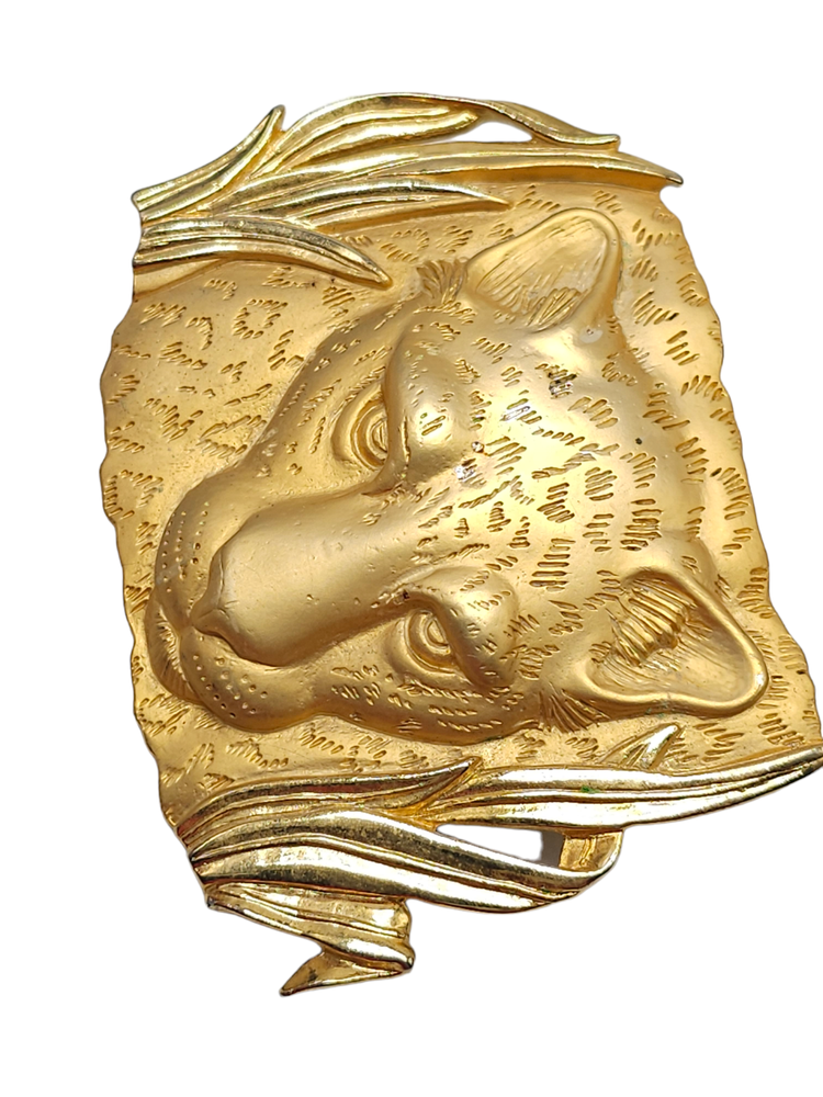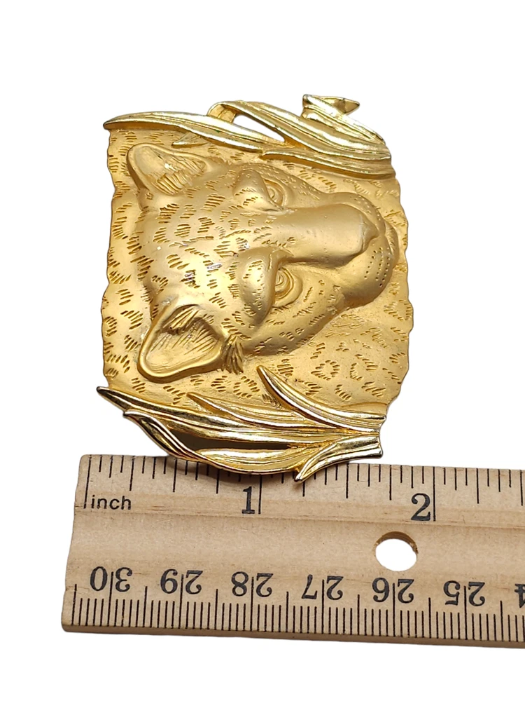 Large PARK LANE Tiger Brooch Matte Gold Plated Detailed Signed Vintage Jewelry Brand: Parklane Textured Jungle Reeds Leopard Face Brooch Pin Gold Tone Vintage Measurements: See Photos! Condition: Pre-Owned Good Gently Used - See All Pics for Condition - some wear see pics