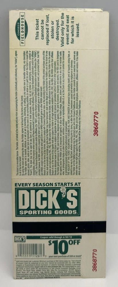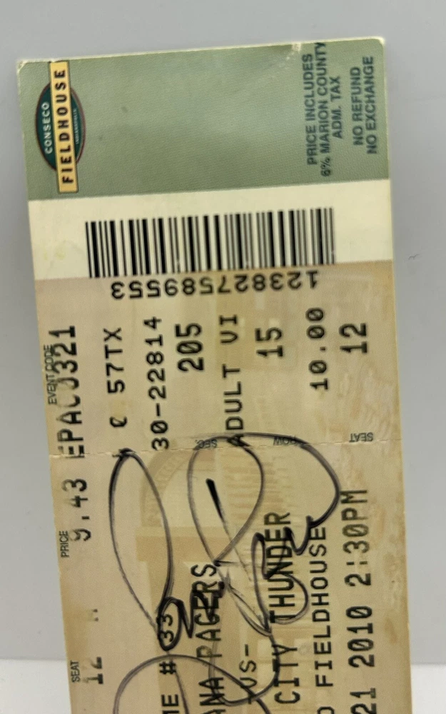 Larry Bird Signed Indianapolis Pacers Ticket 2010 Autographed GM Celtics.