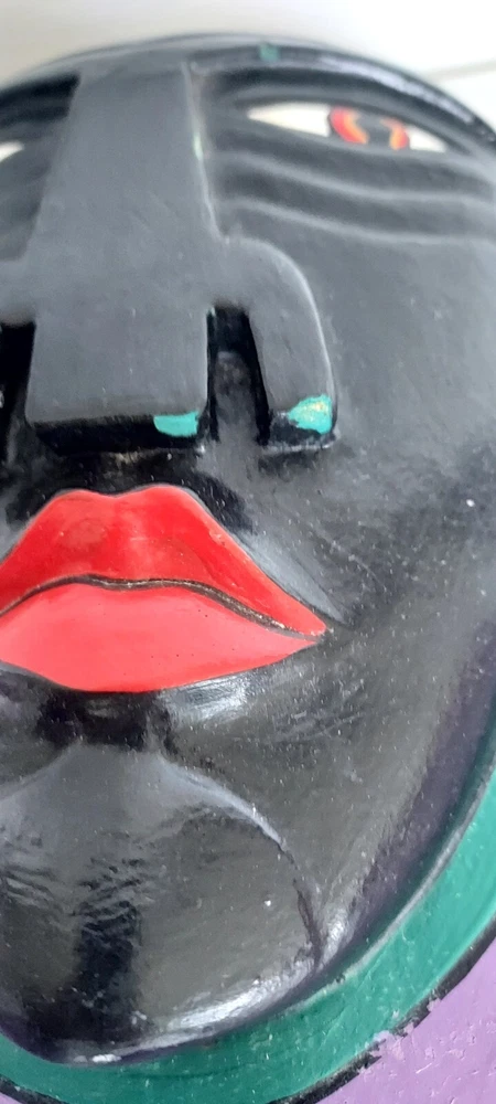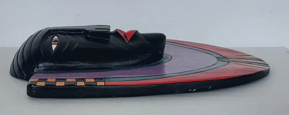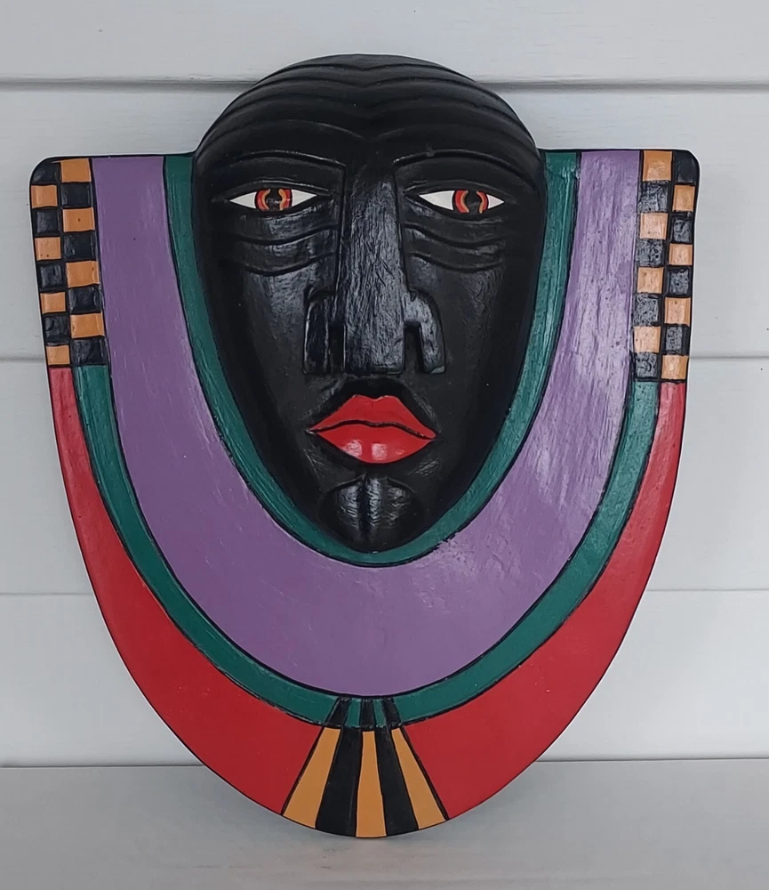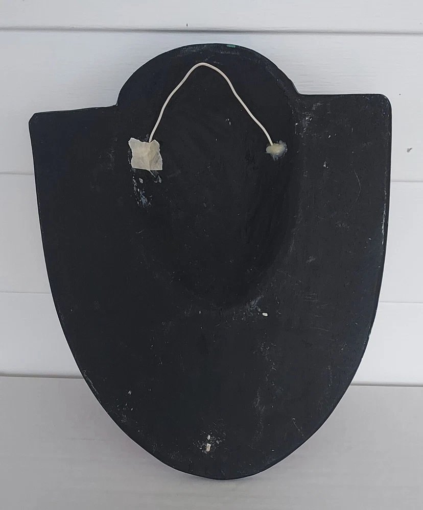This piece of wall art by artist Laurel Burch measures approximately 11.75" tall x 9.5" across. It is carved 3D. In good condition. It has paint loss, and the hanger on the back has been replaced. Whatever was used to affix the hanger is sticky. Please refer to the photos as they are part of the description. Thank you for looking. SHF5 CB27