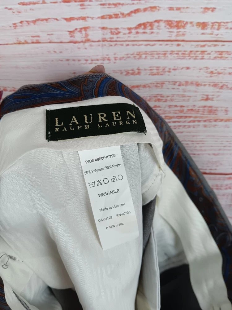 Elevate your formal look with these Lauren Ralph Lauren dress pants. The pants are made of a comfortable blend of polyester and rayon, and feature a stylish blue color with a zipper closure. The pants are designed for men with a size 38 waist and 30 inseam, and are perfect for any occasion. The pants have a classic button closure and are tailored to a regular fit. These pants are perfect for any man who wants to look sharp and stay comfortable. The pants are versatile and can be dressed up or down. The pants are made of high-quality materials and are built to last. Add these stylish dress pants to your wardrobe today and look your best at all times.