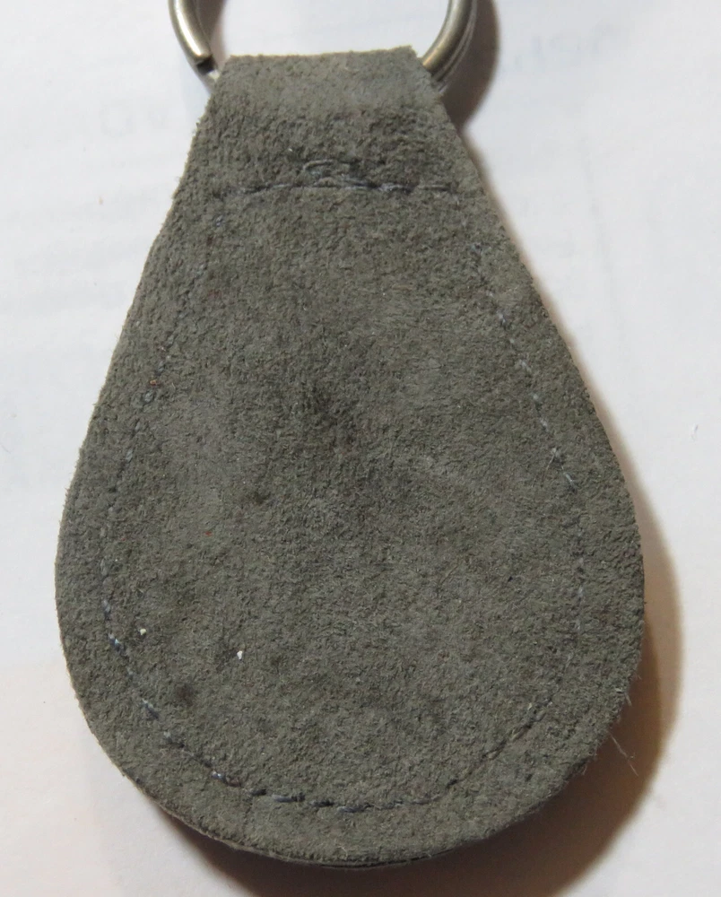 Le Mans Keychain Suede Key Chain Light Grey Am thinking might be from the 70's or very early 80's. True vintage.