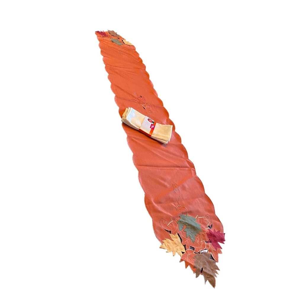 Leaf Fall Thanksgiving Runner + 4 Cream color Cloth Napkins Runner measures 70x13 no stains or holes The napkins are new and measure 18x18