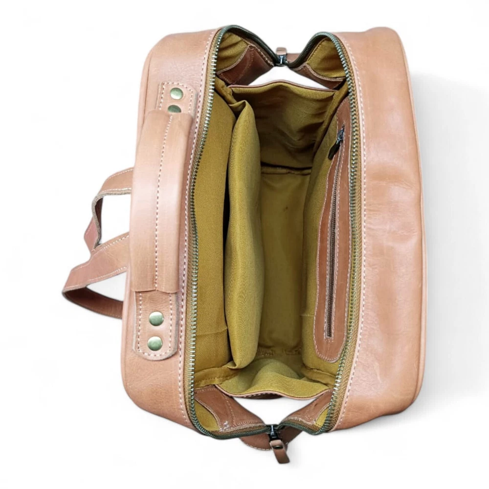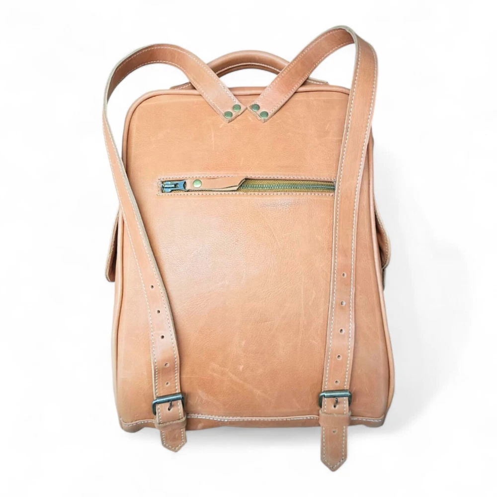 This leather backpack is a stylish and versatile accessory suitable for various occasions, including travel, workwear, and business settings. The bag has a solid brown color, with a canvas fabric type, and a large size measuring 11 inches in width, 5 inches in depth, and 16 inches in height. It features a zip-around closure, slide closure, and an adjustable shoulder strap for comfort and convenience. The bag also has a laptop sleeve/protection, making it perfect for students or professionals on-the-go. The brass hardware material and personalization instructions make it a unique and personalized accessory. This handmade Balenciaga City Bag model is a vintage piece manufactured in Pakistan between 2020-2029.