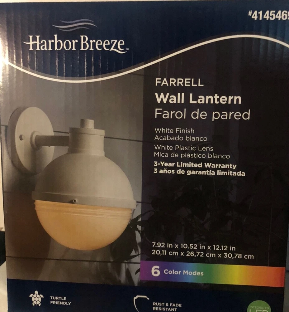 This LED wall lantern from Harbor Breeze is perfect for outdoor lighting with its anti-corrosive plastic material and 300 lumens of brightness. The six color modes provide a fun and customizable experience for any outdoor area. Assembly is required but with no bulb replacement necessary, maintenance is a breeze. The Farrell wall lantern is hardwired and wall-mounted, making it a sturdy and durable addition to any yard, garden, or outdoor living space. With a voltage of 6 watts and a bulb life of 25,000-29,000 hours, this lantern is both energy efficient and long-lasting.