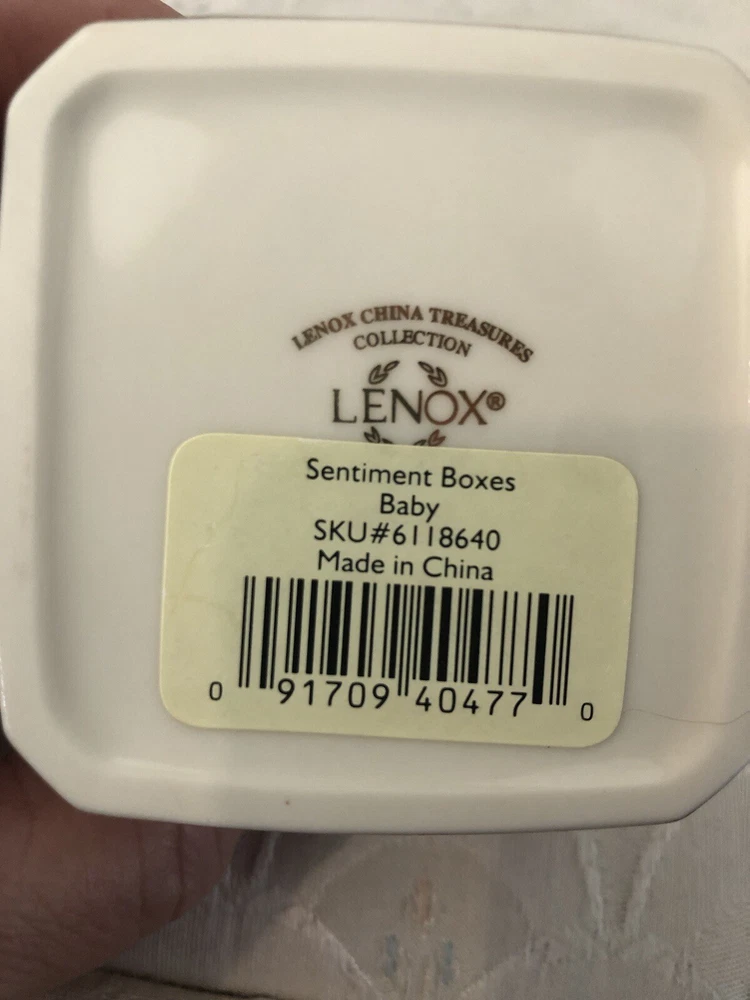 Type:Trinket BoxMaterial:PorcelainBrand:LenoxOccasion:New BabyFeatures:BoxedShape:SquarePackaging:BoxCustomized:NoEngraved:NoSize:SmallOriginal/Reproduction:OriginalEra:Late 20th Century (1970-1999)Country/Region of Manufacture:ChinaSubject:BoxingRoom:NurseryFinish:GlossyTheme:BabyColor:MulticolorHandmade:No