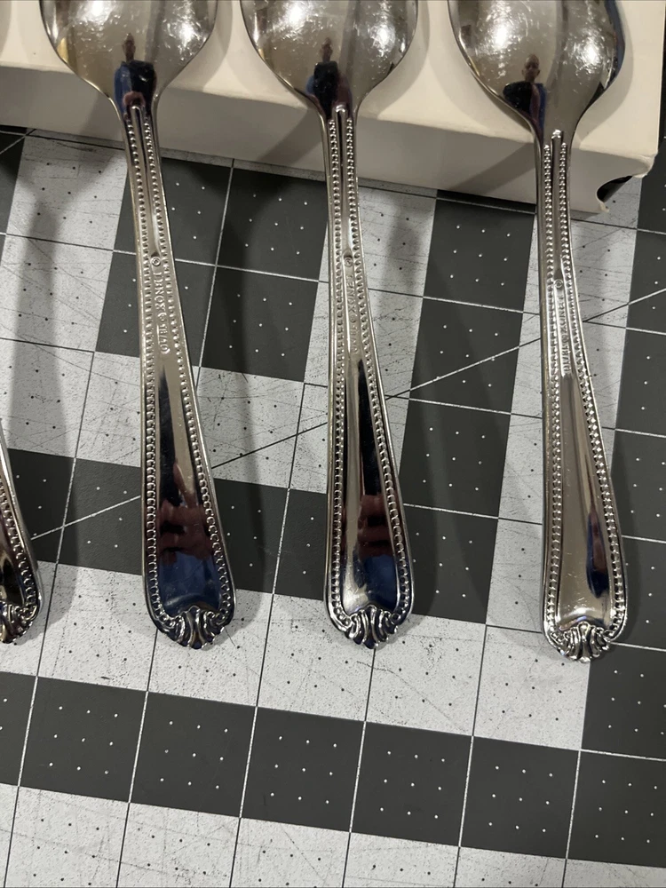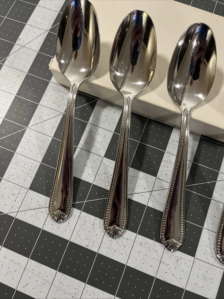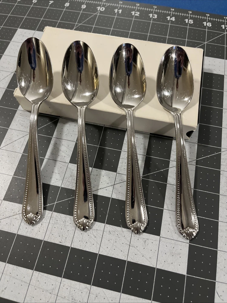 Lenox Bead Plume (4) Oval / Soup Spoons 18/10 Stainless Flatware Replacements