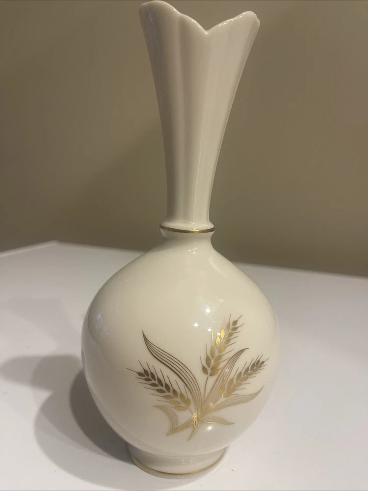 Number in Pack:1Finish:PatternedColor:White & GoldTheme:Does not applygtin13:Does not applyStyle:Mid-Century ModernShape:RoundFeatures:Does not applySubject:Harvest WheatMaterial:PorcelainTime Period Manufactured:1920-1949Model:Bud VaseGlassmaking Technique:Does not applyBrand:LenoxPattern:Harvest WheatSize:Small (up to 12in.)Department:AdultsCountry/Region of Manufacture:United StatesType:VaseUPC:Does not apply
