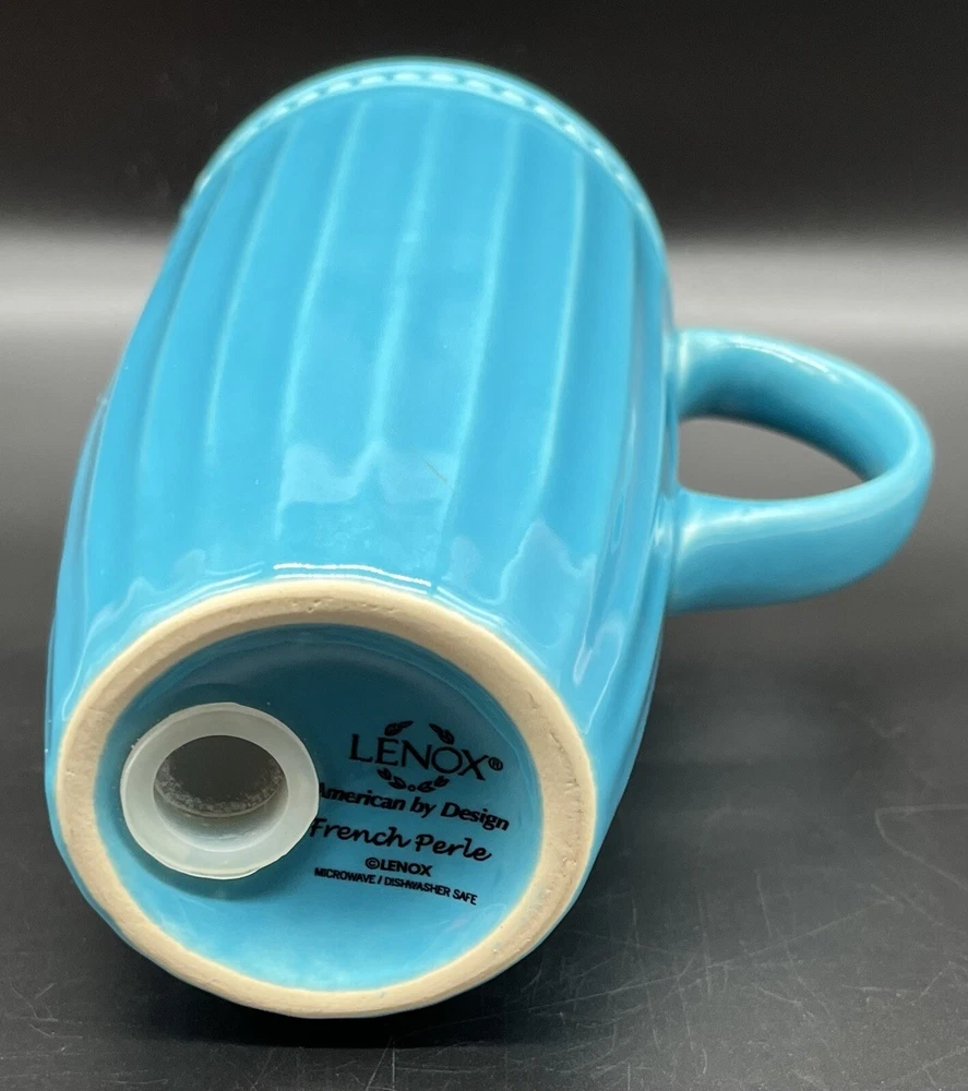 Lenox FRENCH PERLE GROOVE Aqua Peacock Blue Tall Mug 6 1/2" Latte/Coffee Thermal. A lovely mug in excellent condition. Please see my seller's page for other French Perle Groove mugs. I will combine shipping! Do you see more than one item that you want? I can combine shipping. Once you have clicked the “Buy It Now” option, request an invoice BEFORE you pay for your items. I am always on the lookout for vintage and sought after items. Please check out my sellers page for other great products!