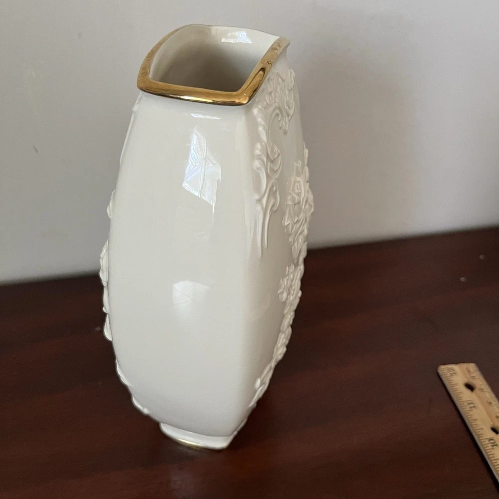 Lenox Masterpiece Med Vase - 24K Gold Rimmed - Embossed Floral Design - No Chips Gorgeous!!! Excellent condition- Please feel free to make an offer on anything that i have listed. Stay a while & look around. Thanks for viewing— take care!