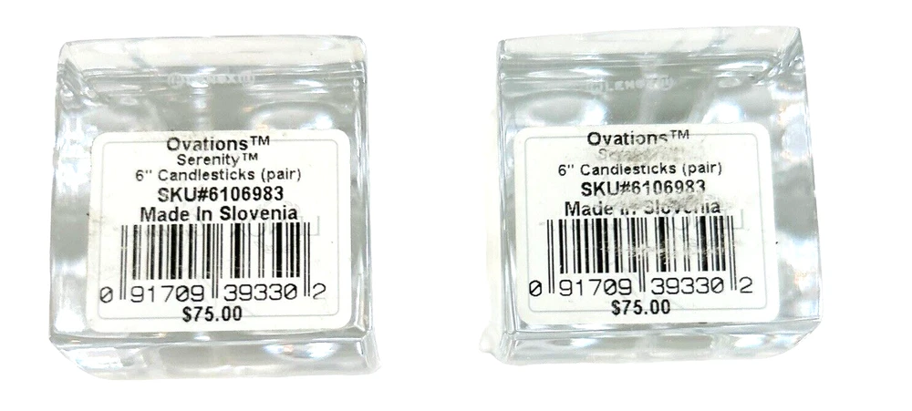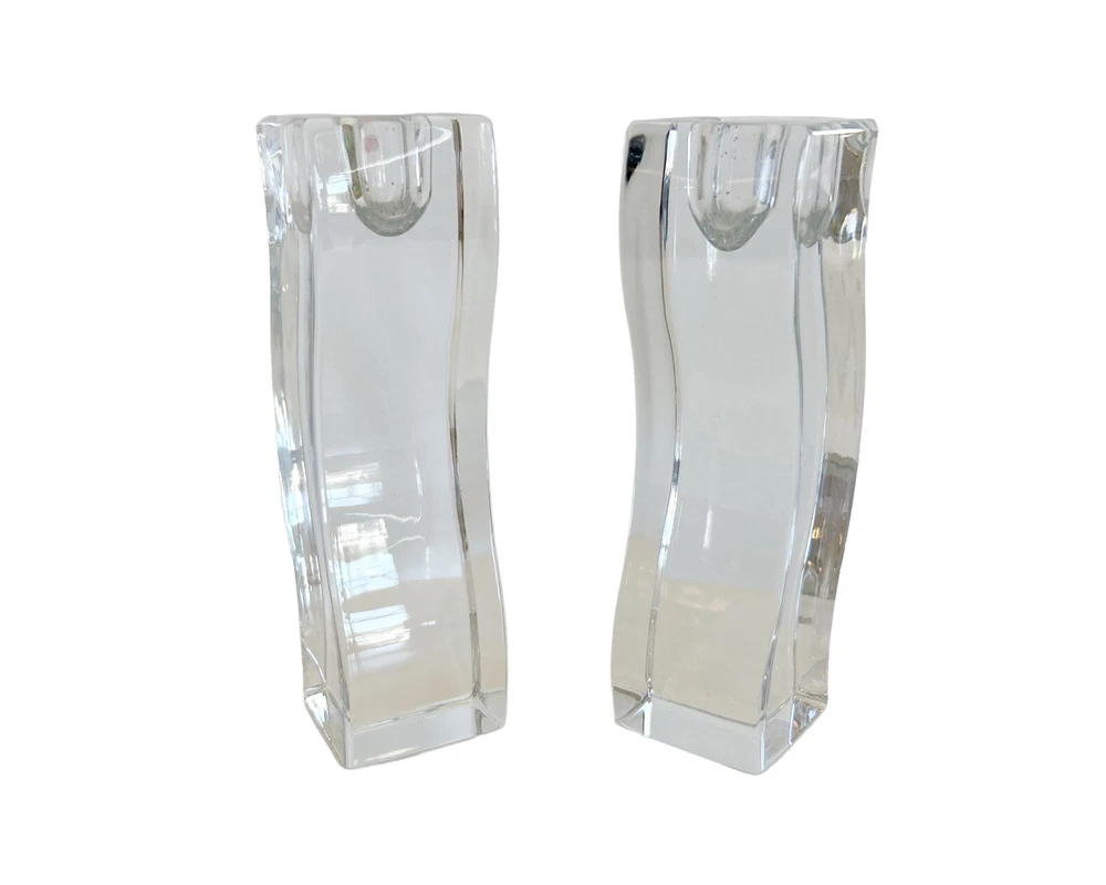Add an elegant touch to your home decor with this Lenox Ovations Cascade Candlestick Pair. Made of heavy lead crystal, these contemporary candlestick holders feature a glossy finish and intricate crystal details. Measuring 6.25 inches in height, they are suitable for any room and occasion, from a romantic dinner to a casual gathering. Crafted in Slovenia using fused glass production technique, these candlestick holders are part of the Ovation collection and come in a set of two. They are easy to care for and can be hand washed. Whether you're a collector of decorative items or just looking for a stylish addition to your home, these Lenox candlestick holders are a perfect choice. Approximate measurements are 6 inches tall. Base is 2 ¼ inches by 1 ⅞ inches. Smoke free home Please visit my store at https://www.ebay.com/str/theuniqueredhead . Thank you for your consideration. Please message me if you have any questions. I do combined shipping on my items in the store.
