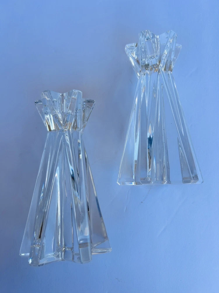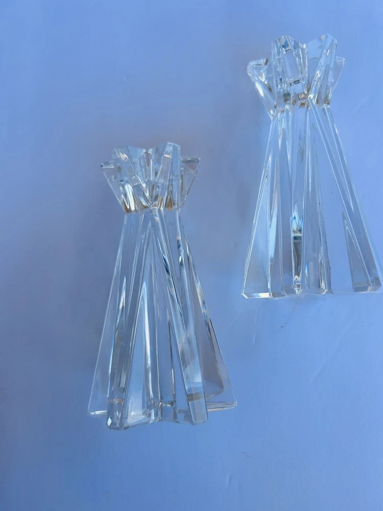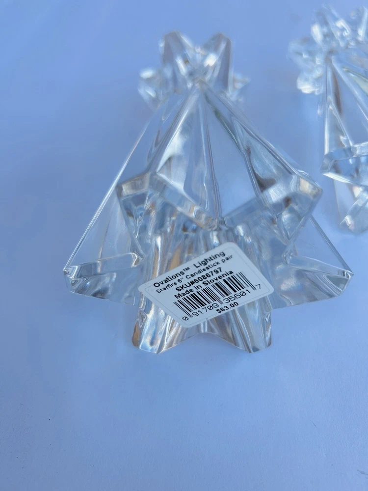 Add a touch of elegance to your home decor with this set of two Lenox Ovations Starfire Crystal Candlesticks. These contemporary style candle holders are perfect for all occasions and feature a beautiful starfire pattern that will sparkle in the candlelight. The clear crystal material adds a luxurious touch to any room, while the 6 inch length provides the perfect height for the candles. The set includes two candlesticks with crystals accents and is perfect for collectors or anyone looking to add some glamour to their home. No chips or cracks Beautiful set 8.14.24