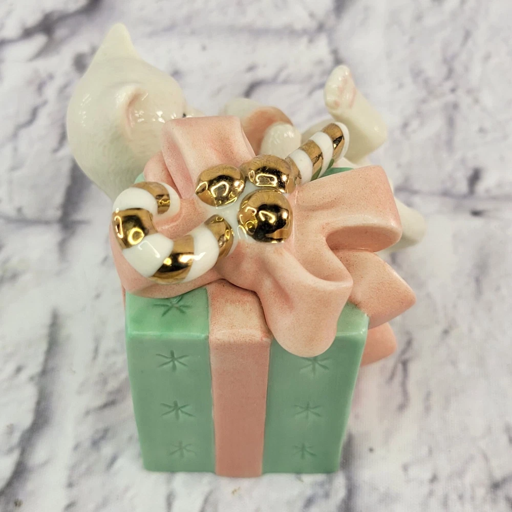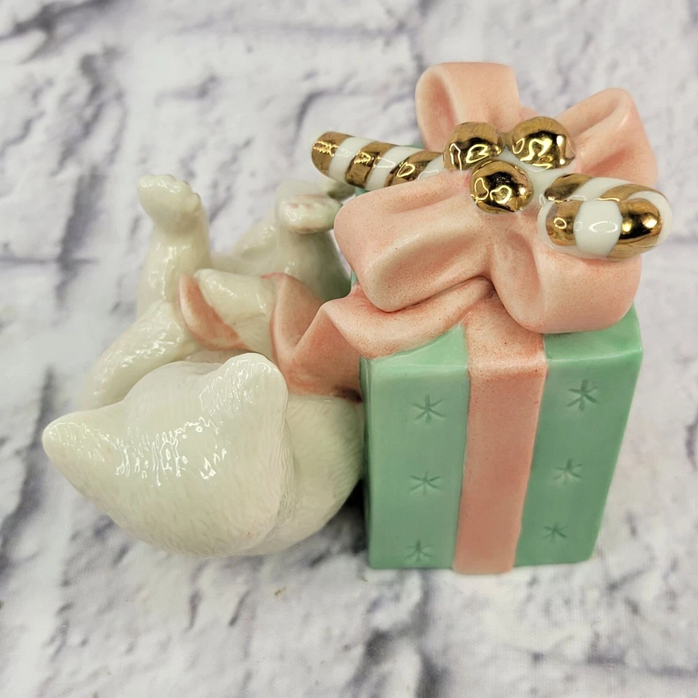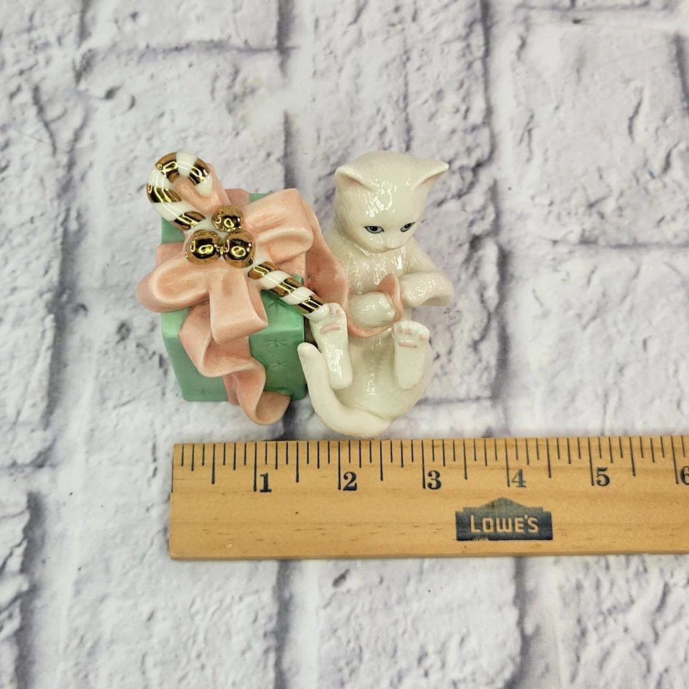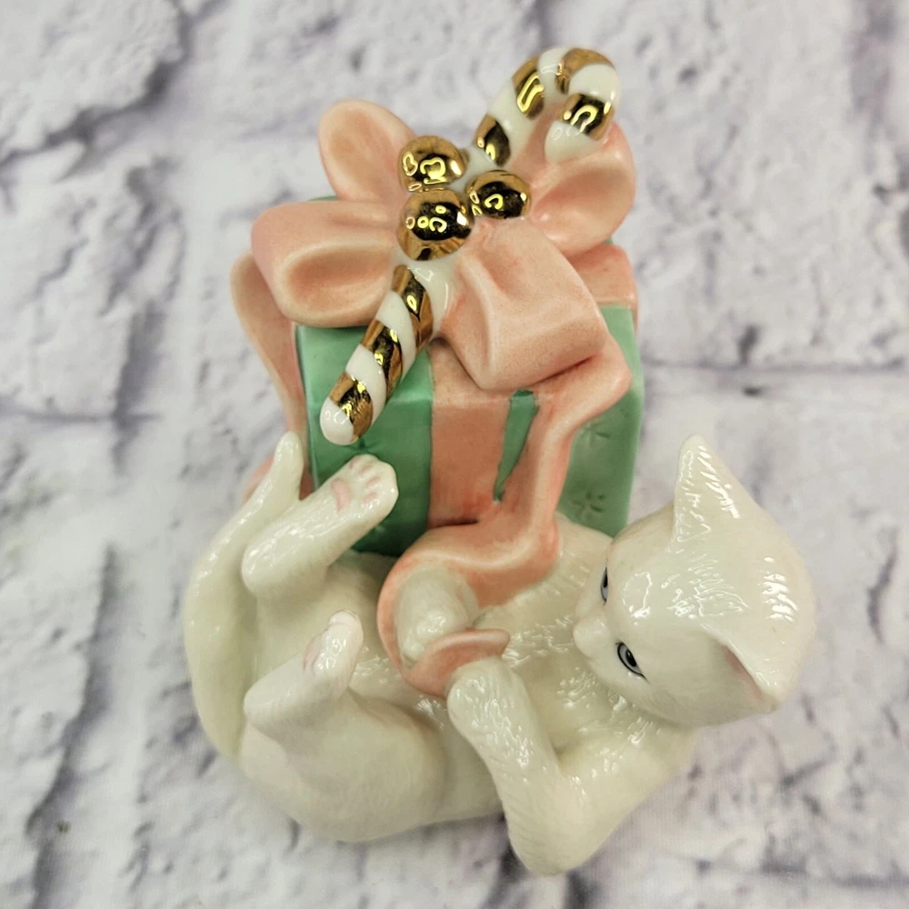 Lenox Porcelain Presently Curious Kitty Cat Figurine With Gift Golden Candy Cane ✨🎁 Celebrate the holiday spirit with this Lenox Presently Curious Kitty cat figurine, featuring a playful kitten exploring a wrapped gift adorned with a golden candy cane accent. This charming porcelain piece is perfect for cat lovers and Lenox collectors alike! 🌟 🎁 Why You’ll Love It: ✔ Authentic Lenox porcelain—renowned for its quality and timeless charm. 🏆✨ ✔ Holiday-themed design—perfect for festive décor or gifting. 🎄🐾 ✔ Hand-painted with gold accents, including a shimmering candy cane. 🌟💎 ✔ Adorable, playful kitty pose—a heartwarming addition to any collection. 🐱🎁 ✔ Great for holiday displays, keepsakes, or a thoughtful gift for cat lovers. 🎁❤️ 💚 Eco-Friendly Packaging: We carefully pack your Lenox figurine using recycled materials, ensuring safe and sustainable delivery. 🌍♻️ 🚚 Fast, Same-Day Shipping: Order today, and your Presently Curious Kitty figurine will ship the same day—ready to bring holiday cheer to your home! 📦✨ ✨ Don’t miss out—click Buy Now to own this festive Lenox kitty figurine today! 🐱🎄🌟
