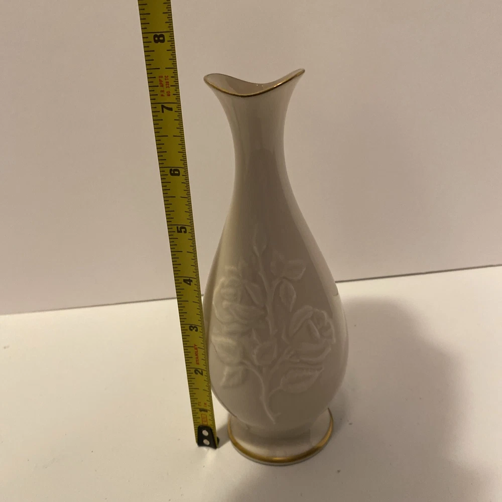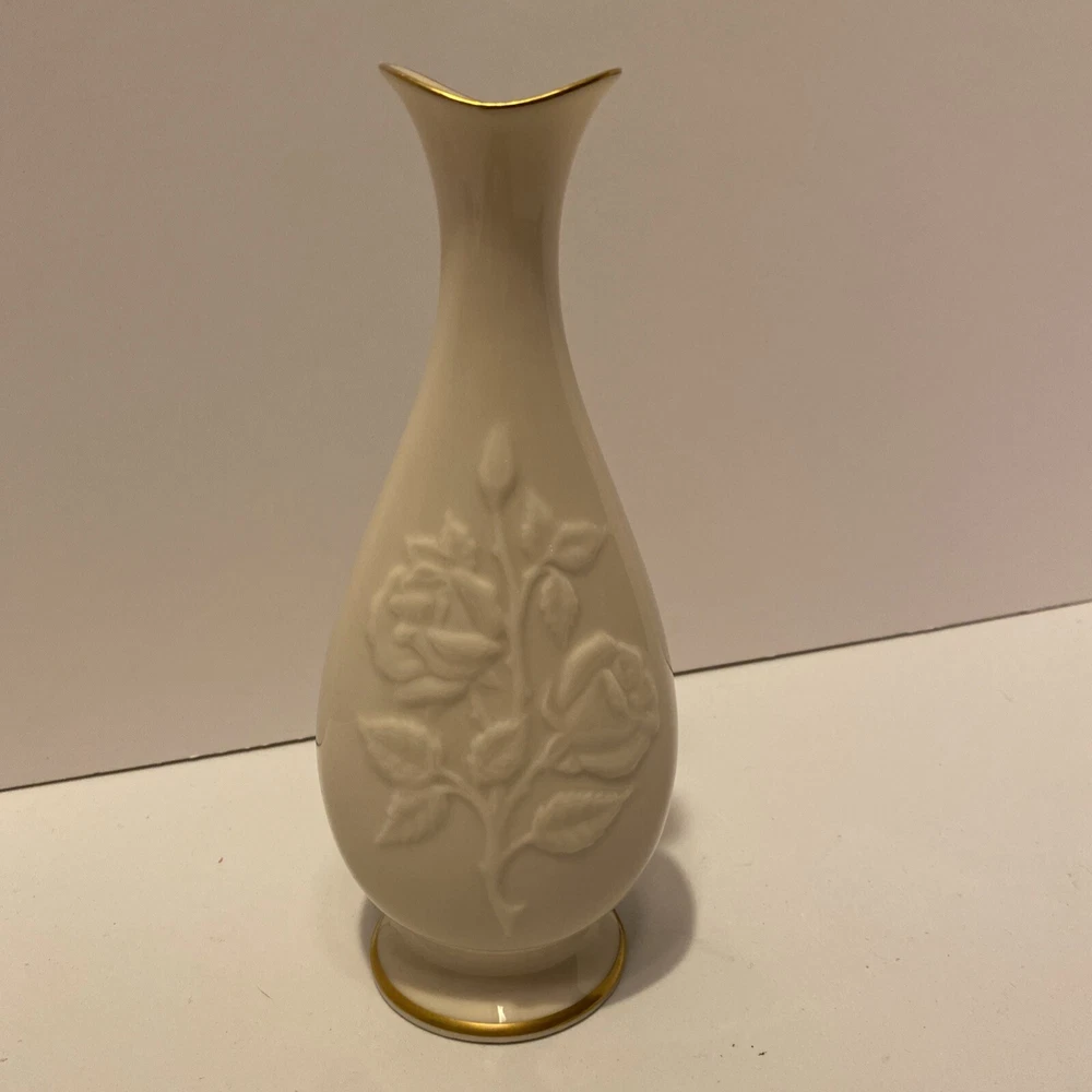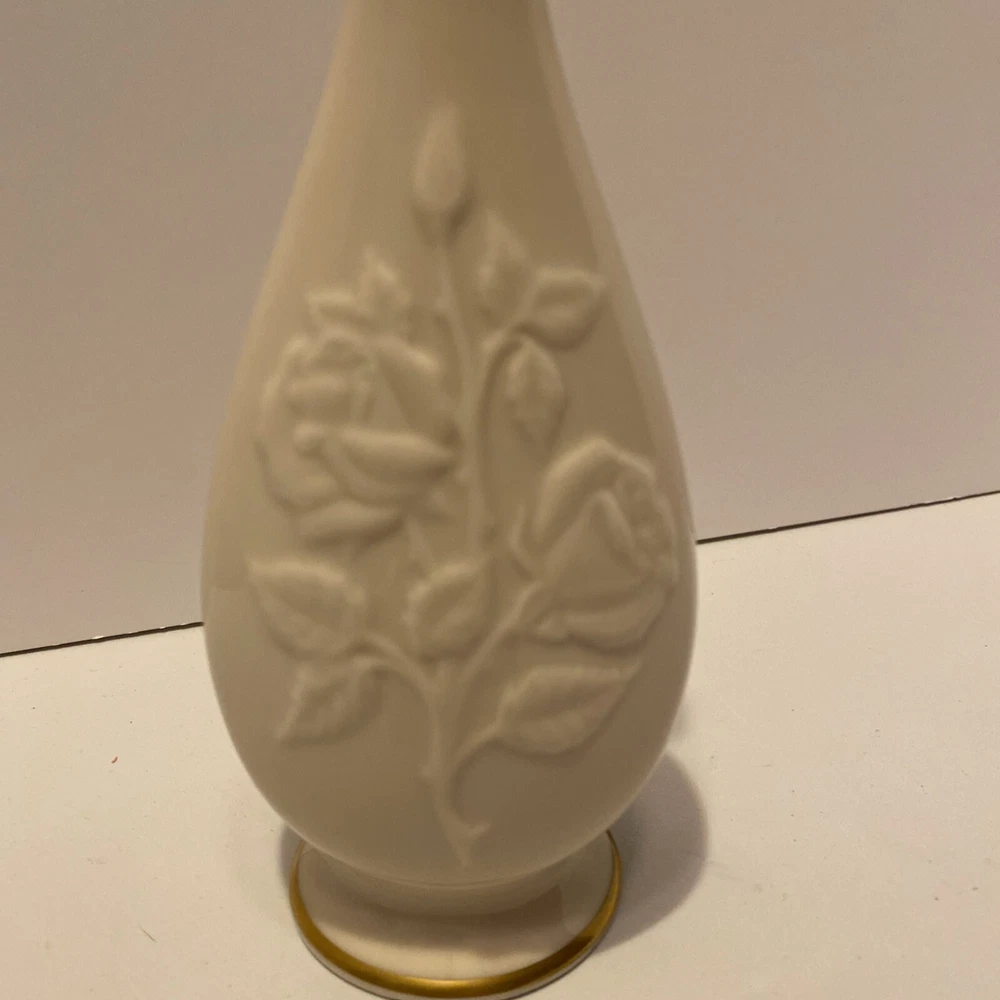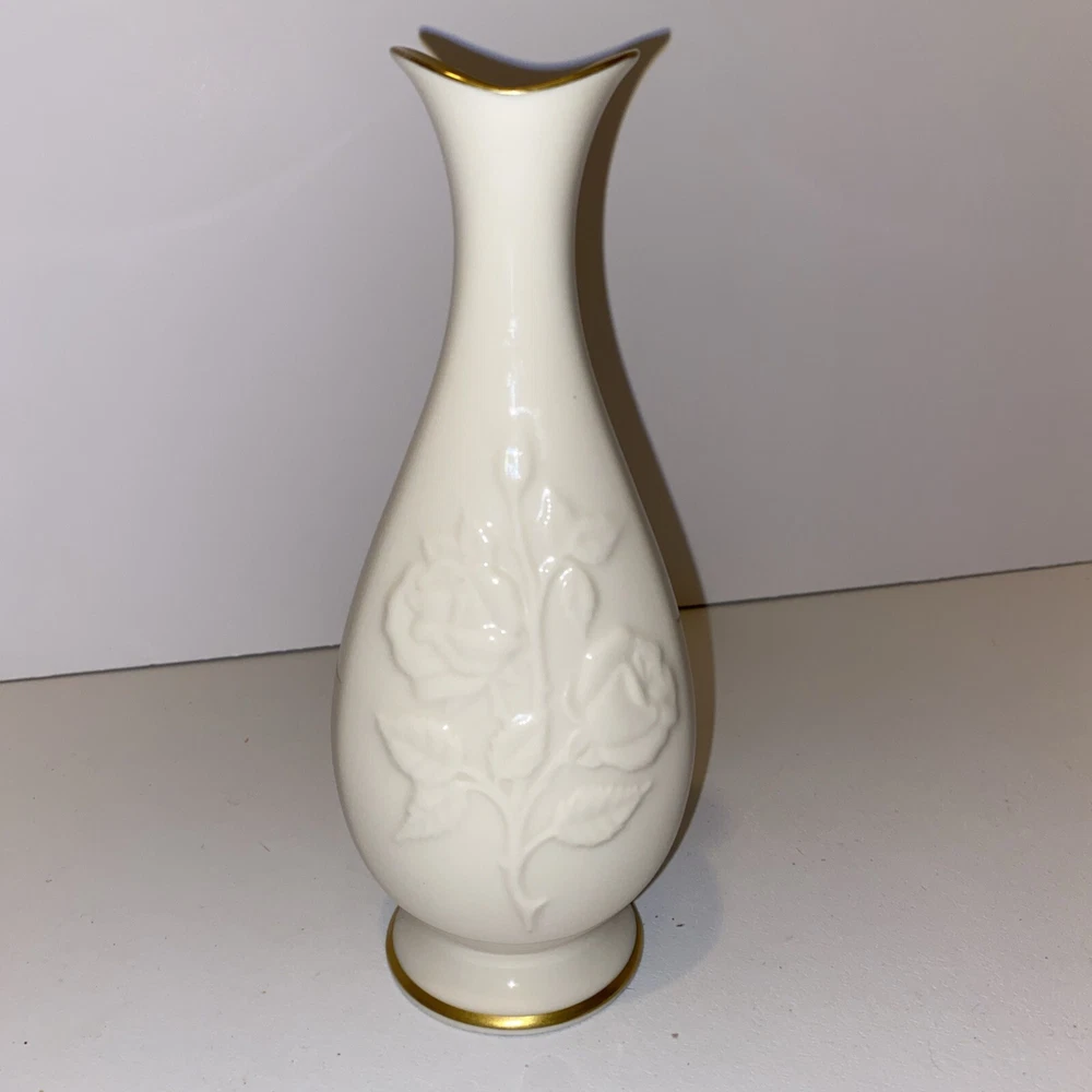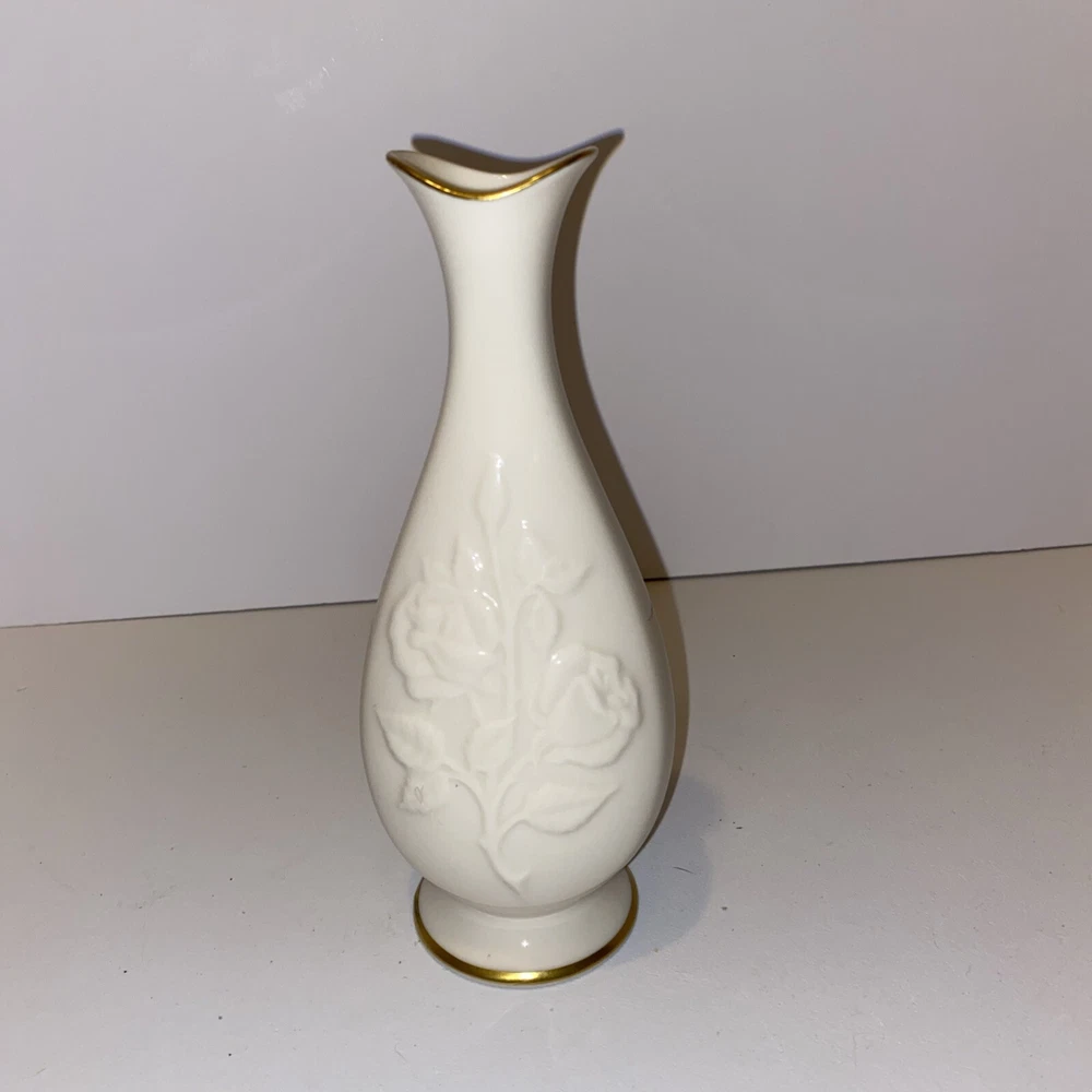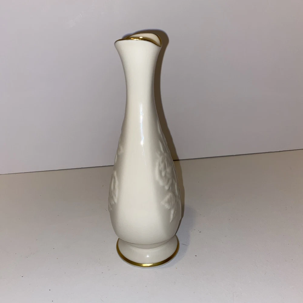 Lenox Stemmed Rose Pattern Bud Vase Gold Trimmed 7.5" Tall Made in USA