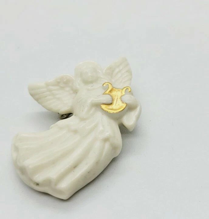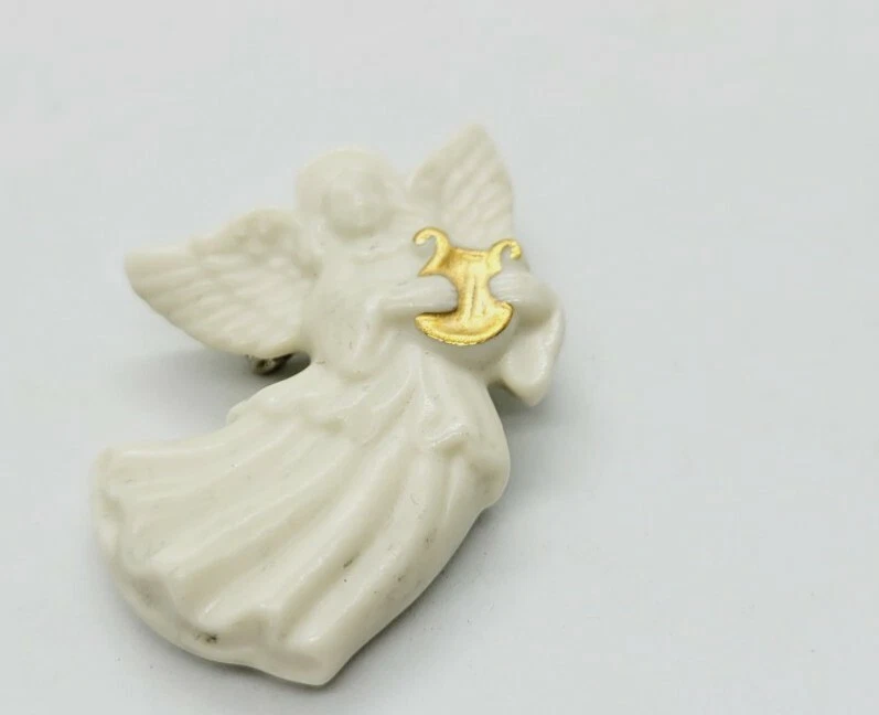 HomeLenox White Porcelain Angel Brooch Handcrafted Playing Harp RARE