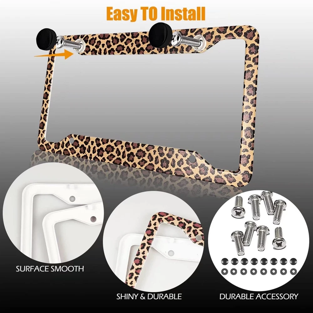 Leopard Cheetah Print License Plate Frames Covers Holder Brown Leopard Print Car Tag Frame Covers Holder Aluminum Metal 4 Holes 2 Pcs Set Decorative for Women Vehicles đăSTANDARD FRAME SIZEă- Check dimensions to make sure it won't cover your state name.Leopard Cheetah Print license plate frame are designed to accommodate about 12.3" x 6.3" (16 x 31 cm), you can see the detailed drawing,four Pre-Drilled,apply to the United States, Canada any vehicle. đăMATERIALă- Leopard Cheetah Print license plate frame made of premium alumina, the high quality and durable.To prevent the rain use does no rust. The plate frame can provide long-lasting protection from corroding, rusting and aging, durability for long lasting usage. đăEASY INSTALLă- Leopard Cheetah Print license plate frame is very easy to install with included mounting screws and can be installed in minutes without special tool required. Anti-theft caps to keep your plate safe and secure.All necessary auto accessories are included, you donât need to buy any other hardware or fasteners. đăUNIQUE DESIGNă- Leopard Cheetah Print license plate frame has a narrow frame and will not take up too much space in your car. It is small and cute. The frame is shining in the sun and at night. It is beautiful and dazzling. Show off your one-of-a-kind sense of style with one of our license plate covers! đăGREAT GIFTă- A novelty Leopard Cheetah Print license plate frame is a perfect automotive gift to showcase your style.We Know How Important Quality Is To You, Don'T Worry, If You Have Any Dissatisfaction With Our License Plate Holder, You Are Always Welcome To Contact Us For A Replacement Or Refund. SHIPPING - We offer FREE shipping on all orders! - We ship within 3 business days of payment, usually sooner - We use a selection of shipping services such as UPS, FedEx, USPS etc - We only ship to the lower 48 states, no APO/FPO addresses or PO Boxes allowed International buyers â please note: Import duties, taxes, and charges aren't included in the item price or postage cost. These charges are the buyer's responsibility. - Please check with your country's customs office to determine what these additional costs will be prior to bidding or buying. - We have confidence in our products, but if you are not fully satisfied please contact us within 30 days of purchase and you will get full refund. * Order Cancellation Policy ** You can return a product for up to 30 days from the date you purchased it. 1. The seller reserves the right to cancel the special case only due to eBay cancellation fee. 2. The decision of seller is the final. 3. The seller will respond to the cancellation request within 2 business days. Please wait for the result of cancellation. 4. In case the cancellation is not completed by some reasons, the buyer can follow the options below to get the refund. 4.1 The buyer can reject the item when it arrives. 4.2 The buyer can send the item back to the seller within 30 days If the buyer receives item (USA Shipment ONLY). The seller will provide the FREE return label to the buyer when the buyer opens " Return Item" case on eBay by using the reason as "Change my mind" ONLY. 5. When buyer has placed the order. The order will be processed and completed by automatic warehouse system within 5 minutes. In case that buyer sends the cancellation request after 5 minutes of placing the order, the request will be rejected. **Sending direct message to cancel the order is not allowed for every case.* Return Policy For the return case - If buyer would like to return the items for refund or replacement, please CONTACT SELLER to receive the free return label from seller. The refund or replacement will be processed with the tracking number of return label which is provided by seller only. The other ways of return which are not approved by seller will not be processed for the refund or replacement. CUSTOMER SERVICE - We try our best to make sure every customer is completely satisfied. - If there's a problem, feel free to message us! - We're happy to help.