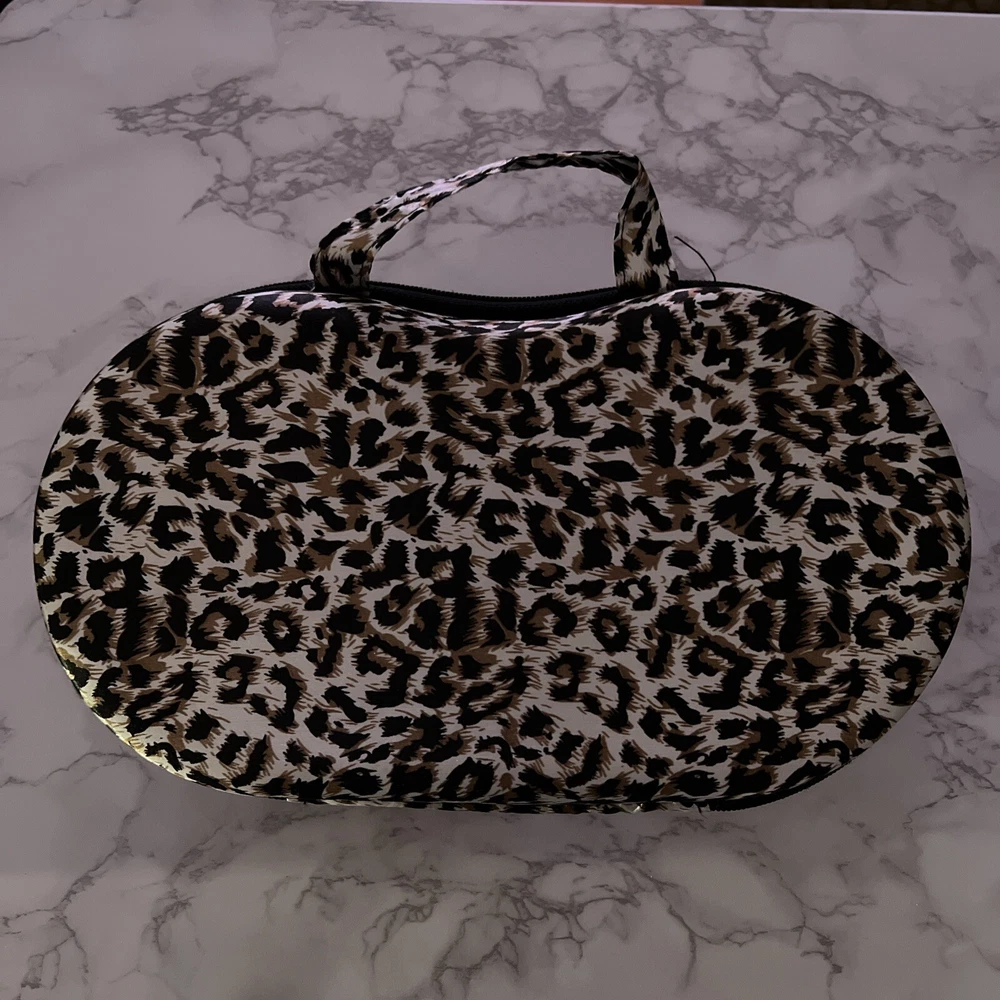 This listing is a sassy leopard print bra & panty travel organizer! Raised dome compartment accommodates bras and a mesh pocket hold underwear. Super cute gift!!! Sells on Amazon for $16.99. Thank you for looking!