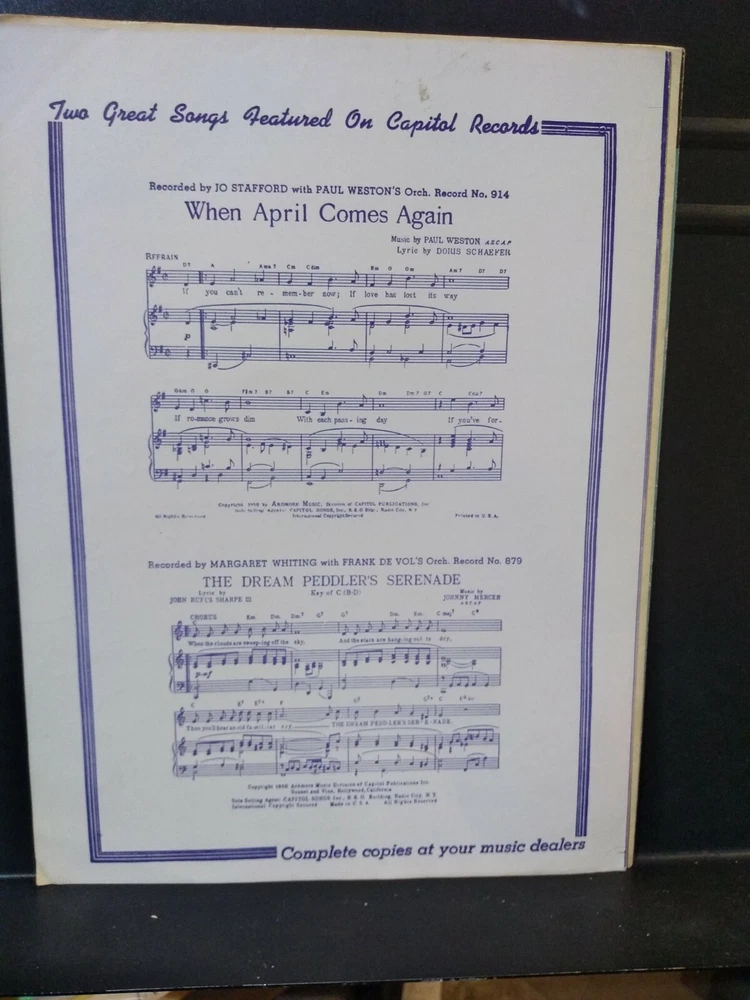 Les Paul Mary Ford Sheet Music Lot Of 2 Vintage Sheets VG Condition. Two sheet lot! Very Good Condition Shipped with Media Mail. From pet free non smoking home. Please see photos for more. I will combine ship on multiple purchases. I will ship International if you pay actual shipping costs