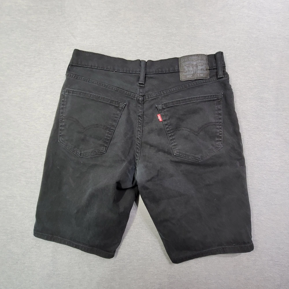 Crafted for comfort and style, these Levi's 541 denim shorts are a go-to for the modern man. The size 32 waist with a mid-rise fit offers a classic look that's both flattering and versatile. The Bermuda style cut paired with a solid black color makes them an easy match for a variety of occasions. The blend of cotton and spandex ensures a stretch fit that moves with you, while the 5-pocket design adds practicality to this sleek garment. With an 11-inch inseam and a flat front, these shorts are designed to cater to everyday wear without compromising on style.