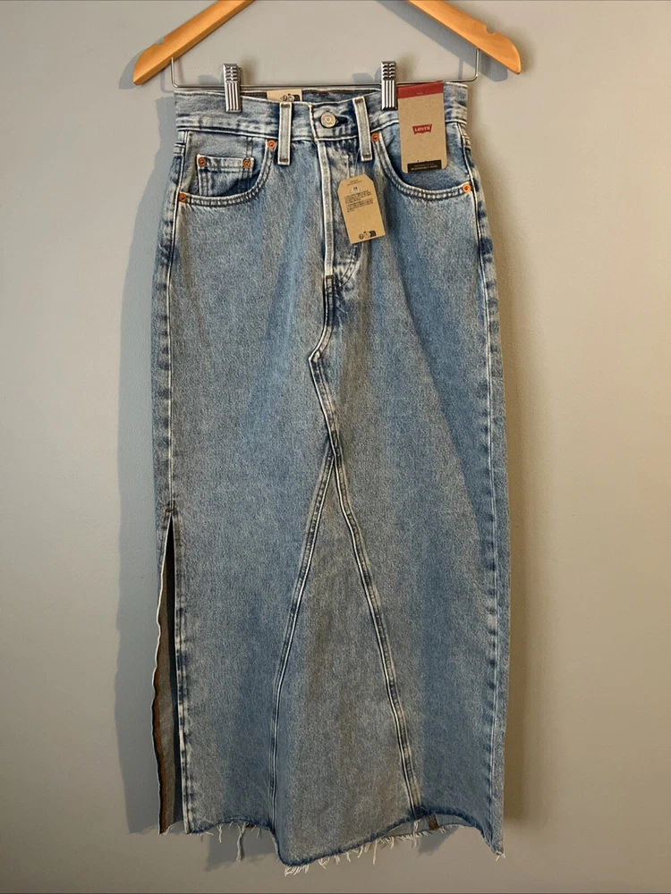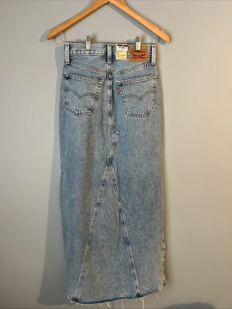 Craft a classic, effortlessly chic look with the Levi’s Maxi Denim Skirt. Featured in a rich blue hue, this skirt is a versatile piece that pairs perfectly with your favorite tee or a smart blouse. Designed to flatter with a regular fit in size 24, it offers a timeless maxi length that exudes elegance and casual sophistication. The skirt showcases a trendy side slit detail, adding a touch of modernity to the traditional denim skirt. It’s an ideal choice for those who value both style and comfort. With an MSRP of $70, this garment is a tangible blend of fashion and function, suitable for a variety of occasions from a laid-back day out to a more polished event.